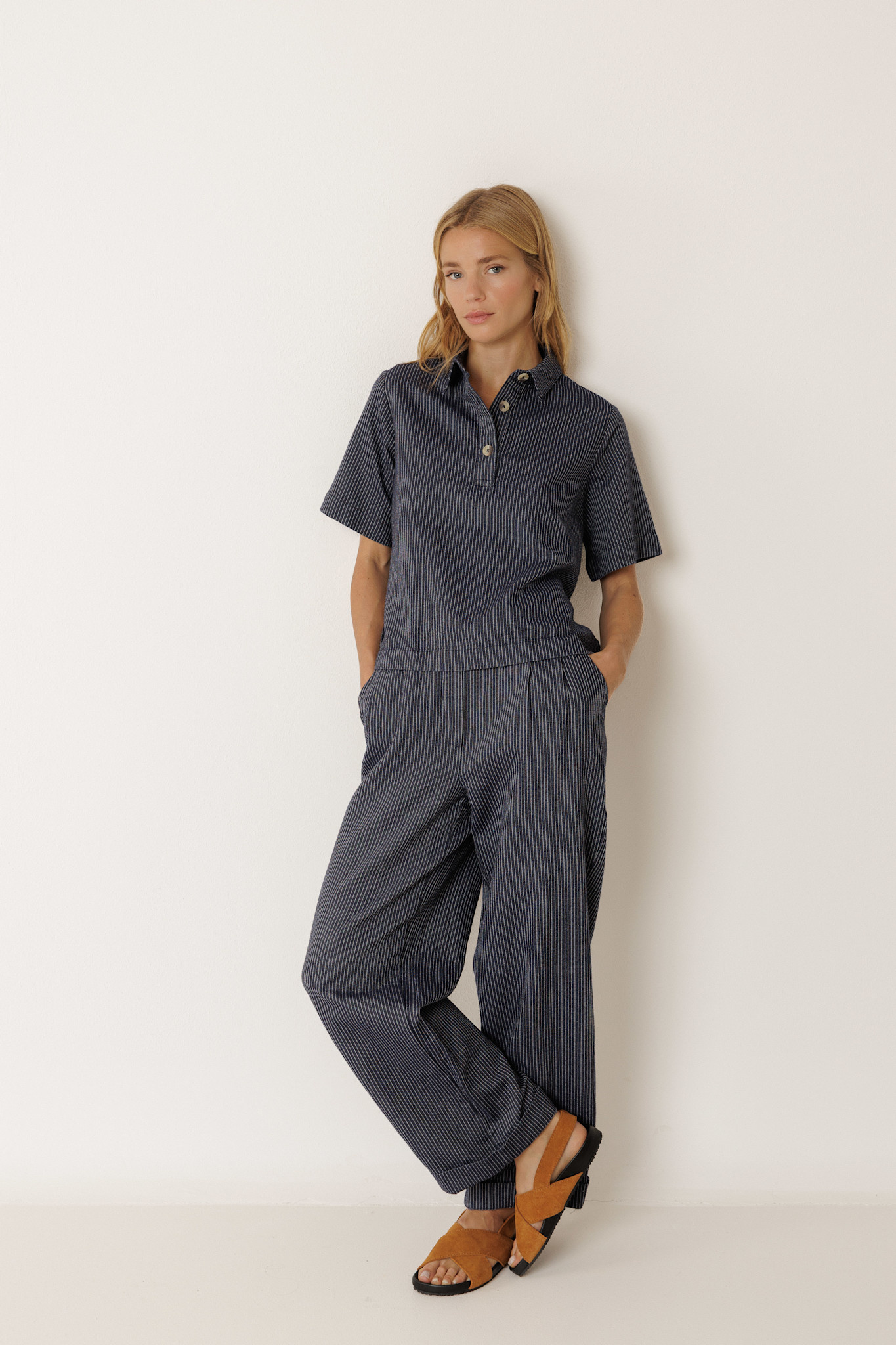 Blouse Indi & Cold à manches courtes bleu marine imprimée