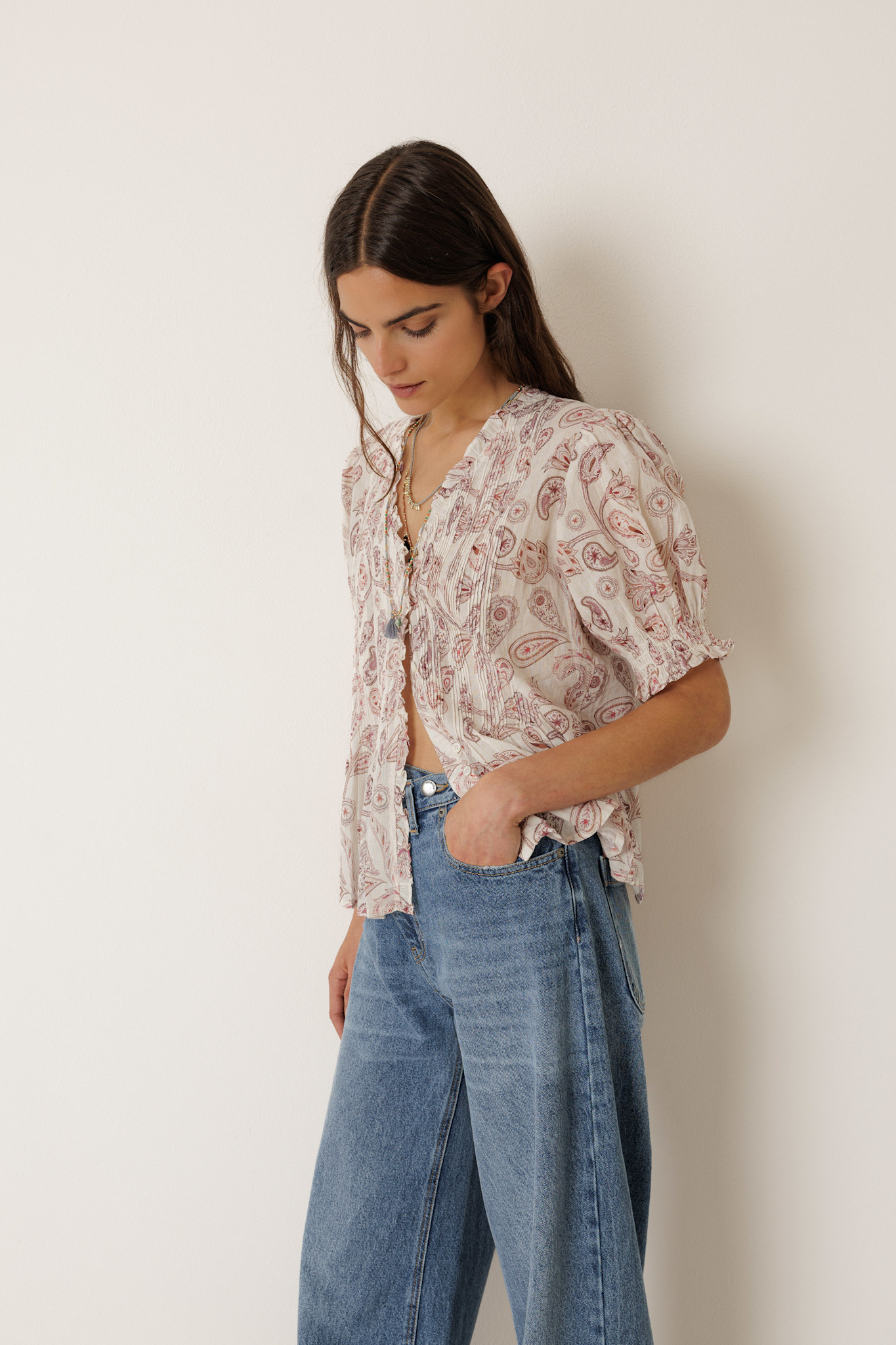Blouse Indi & Cold à manches courtes blanche paisley rose litchi