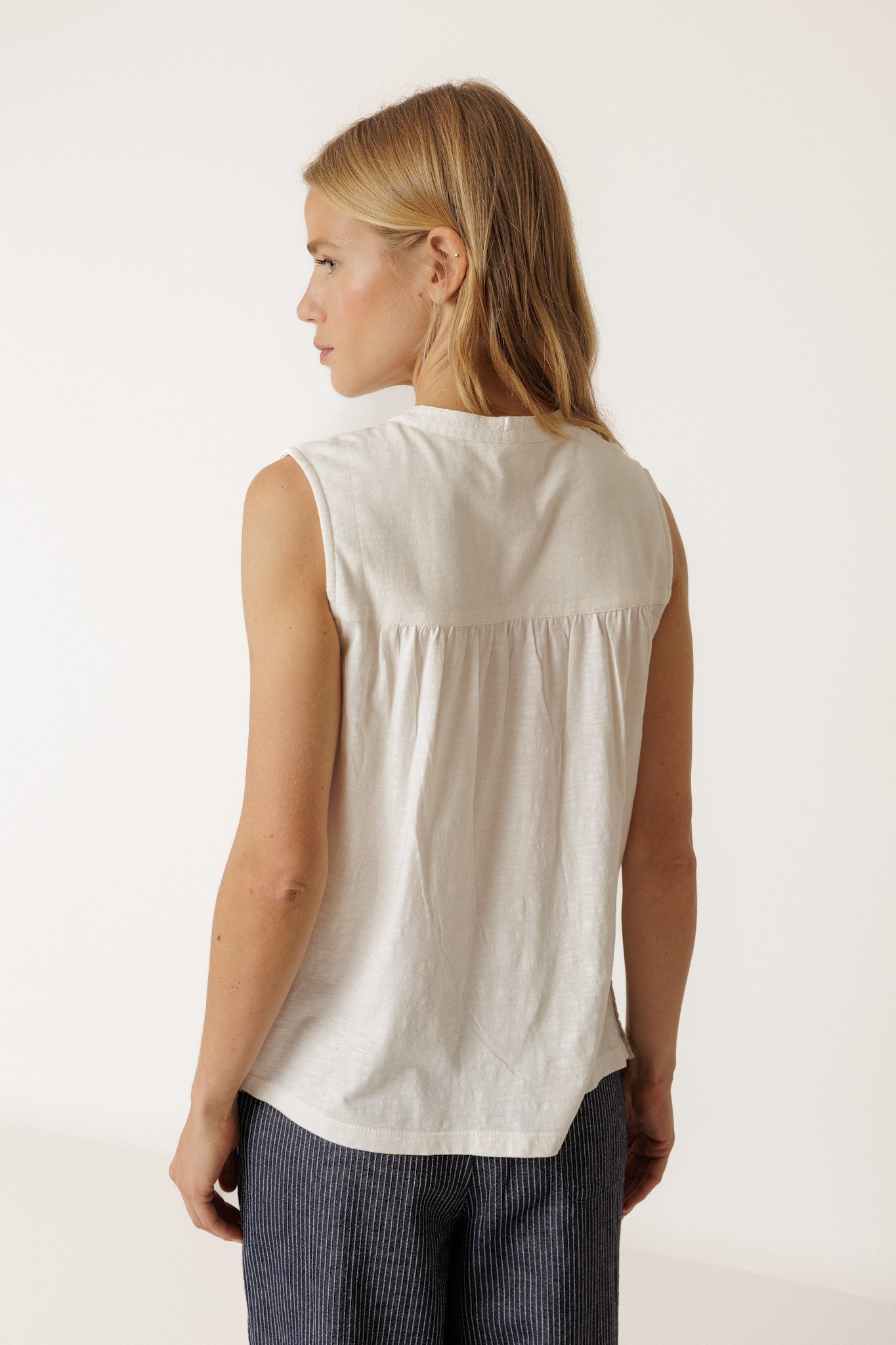 Blouse Indi & Cold bi-matière sans manches avec broderies au bas crème