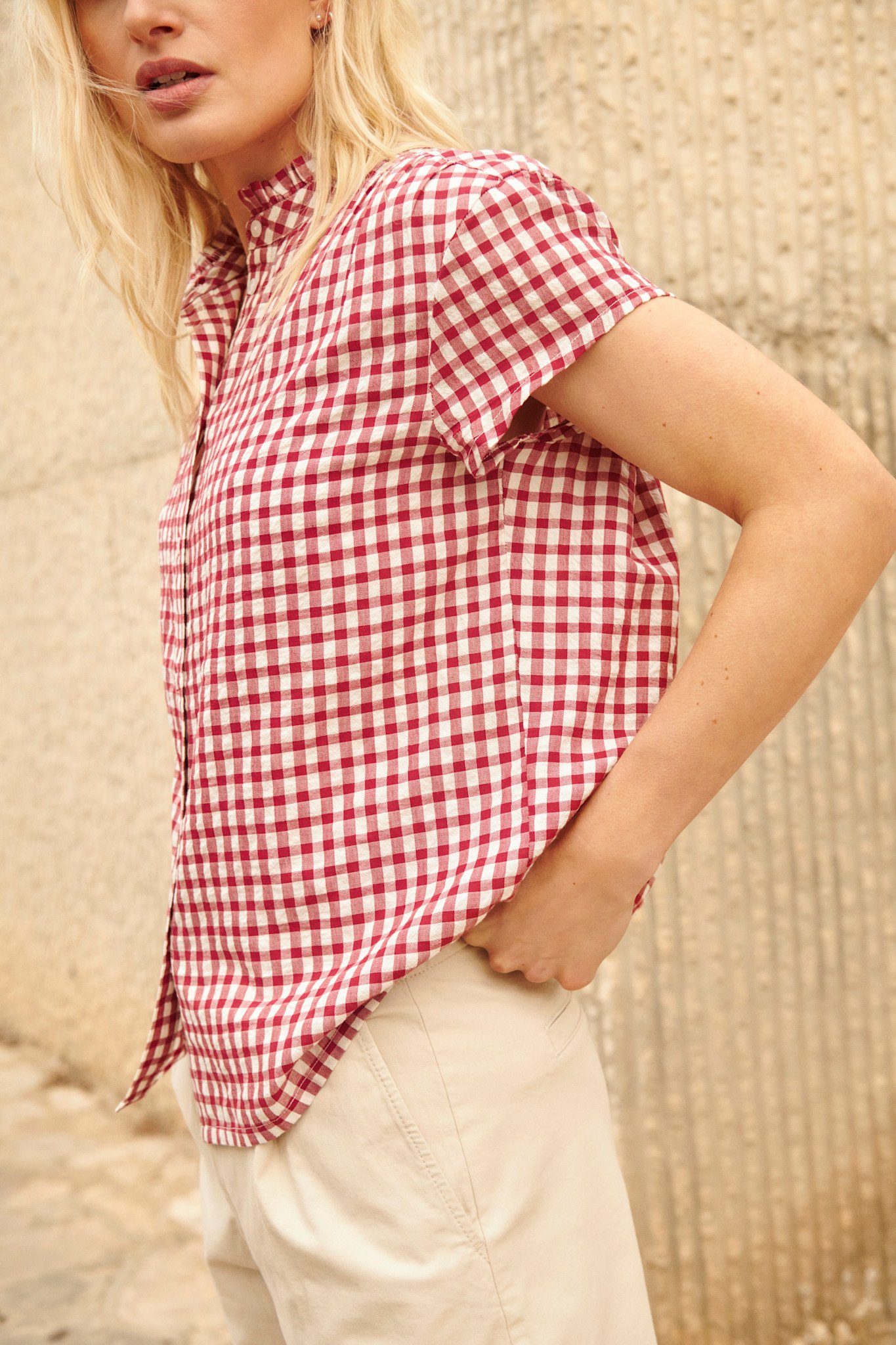 • Fermeture boutonnée avec boutons contrastants