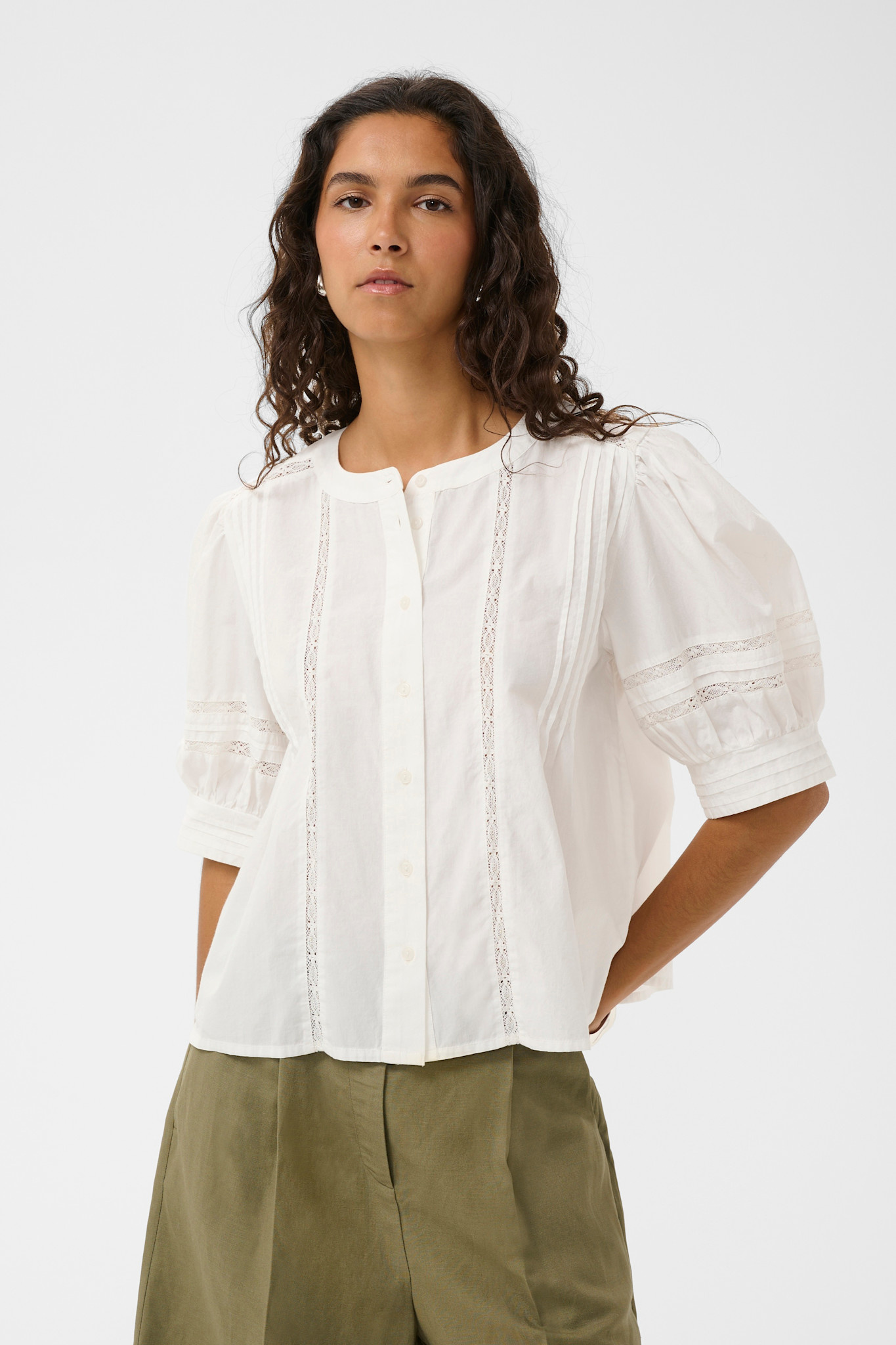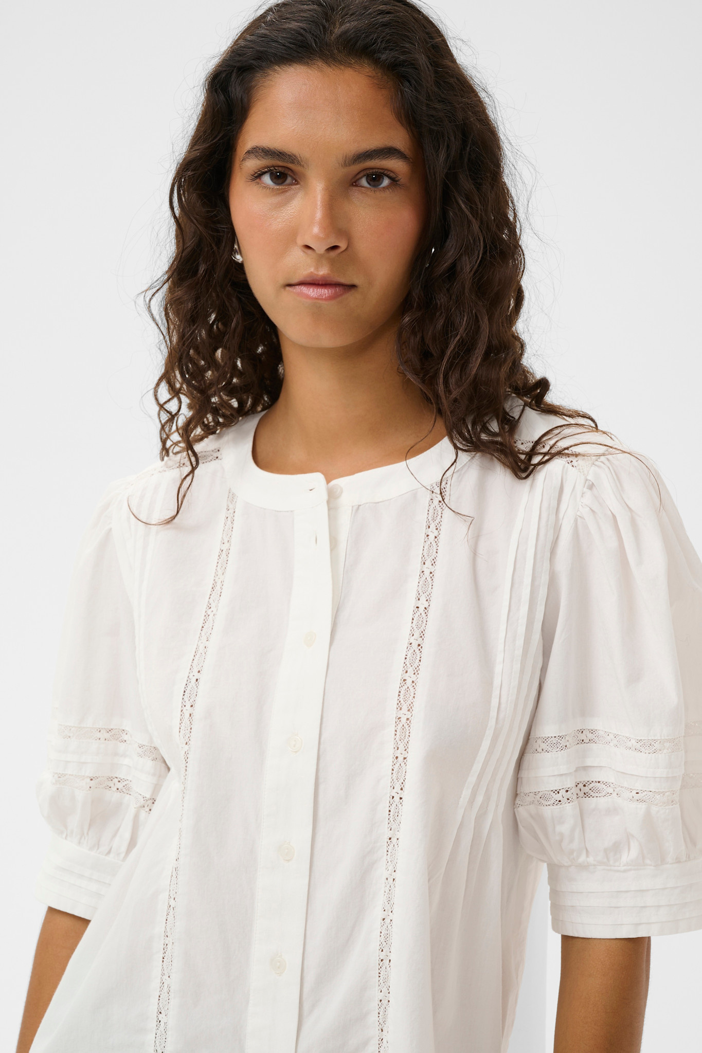 Blouse Soaked Almeda à manches aux coudes à crochet blanche