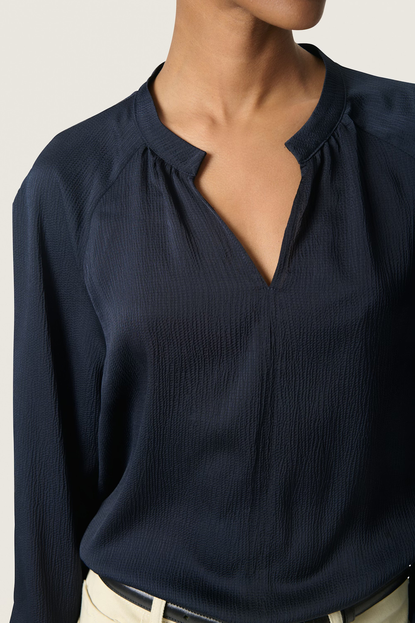 Blouse Soaked in luxury Ioana à col V bleu marine
