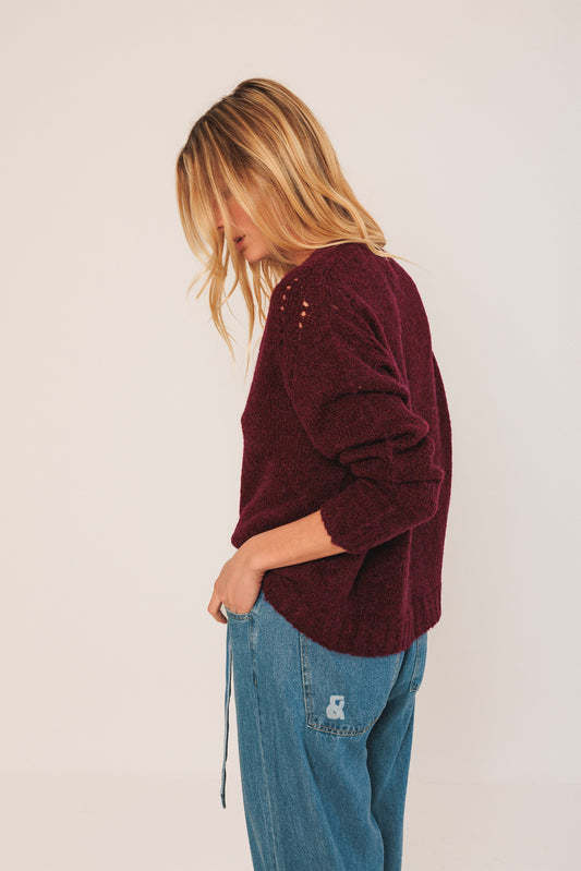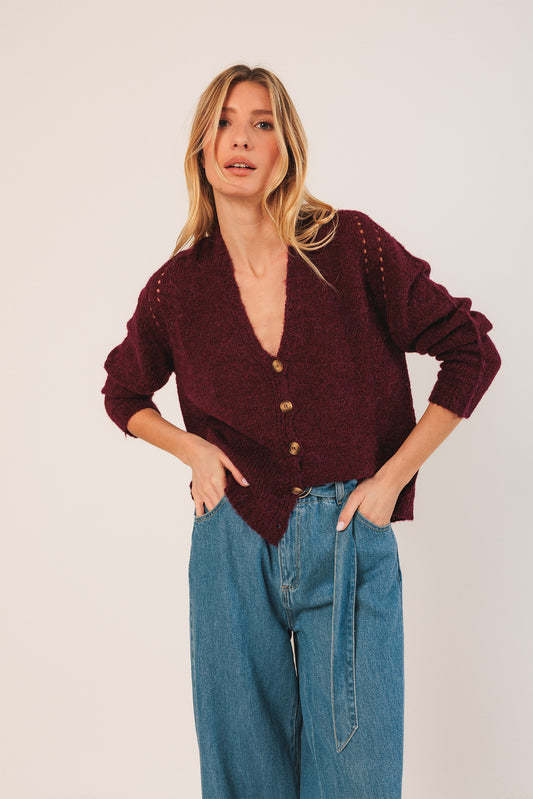 Cardigan Indi & Cold à col V boutonné bordeaux
