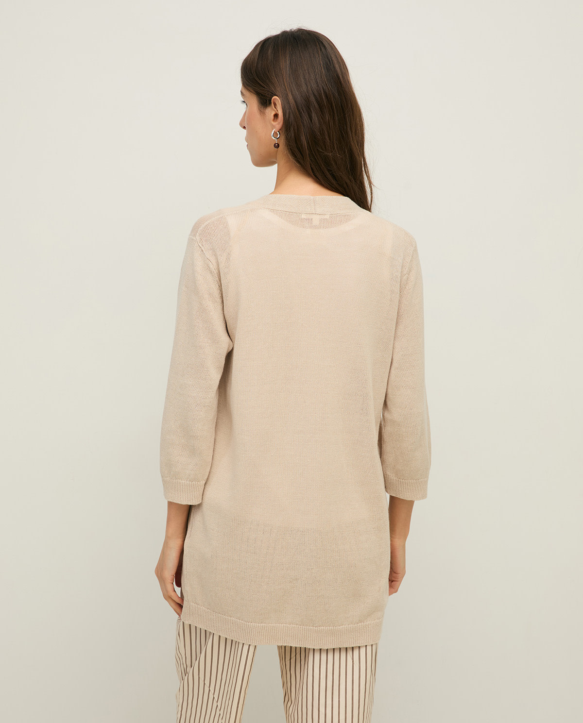 Description du produitCaractéristiques:Coupe relaxeÉpaules légèrement tombantesManches 3/4Poches plaquéesLongueur sous les fessesCardiganComposition:100% LinRéférence de l'article:Style: 44522-003
