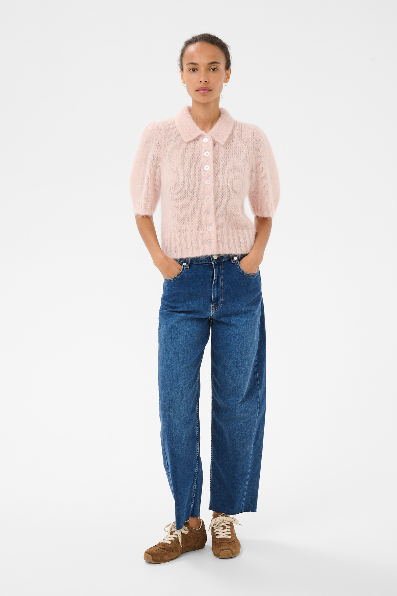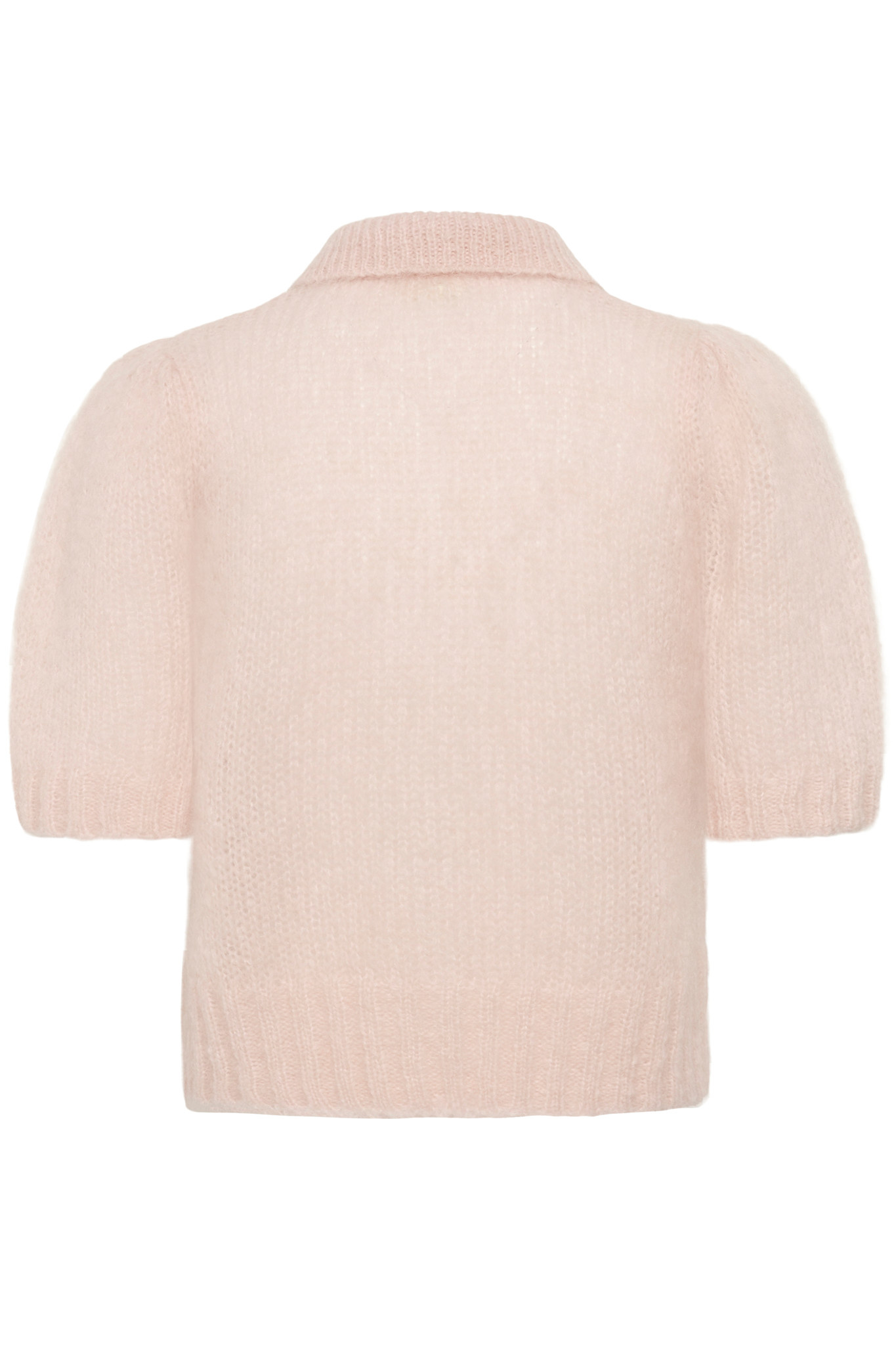 Cardigan Part Two Vernon à col classique boutonné & manches courtes en mohair rose pâle