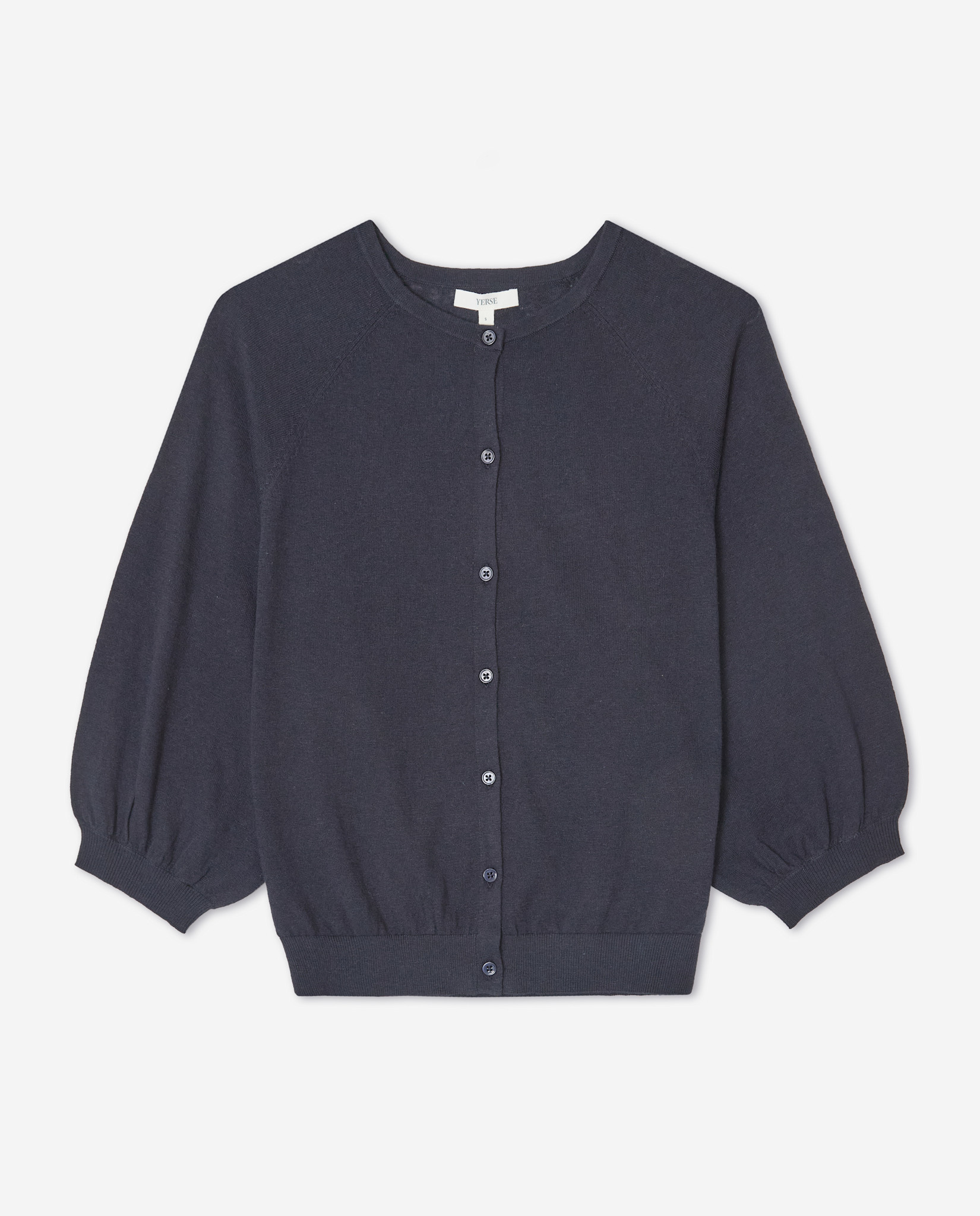 Cardigan Yerse Flax à col rond boutonné bleu marine