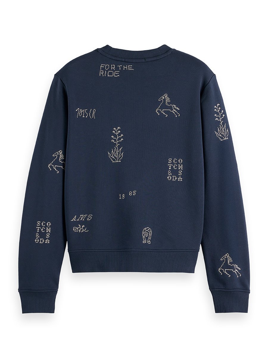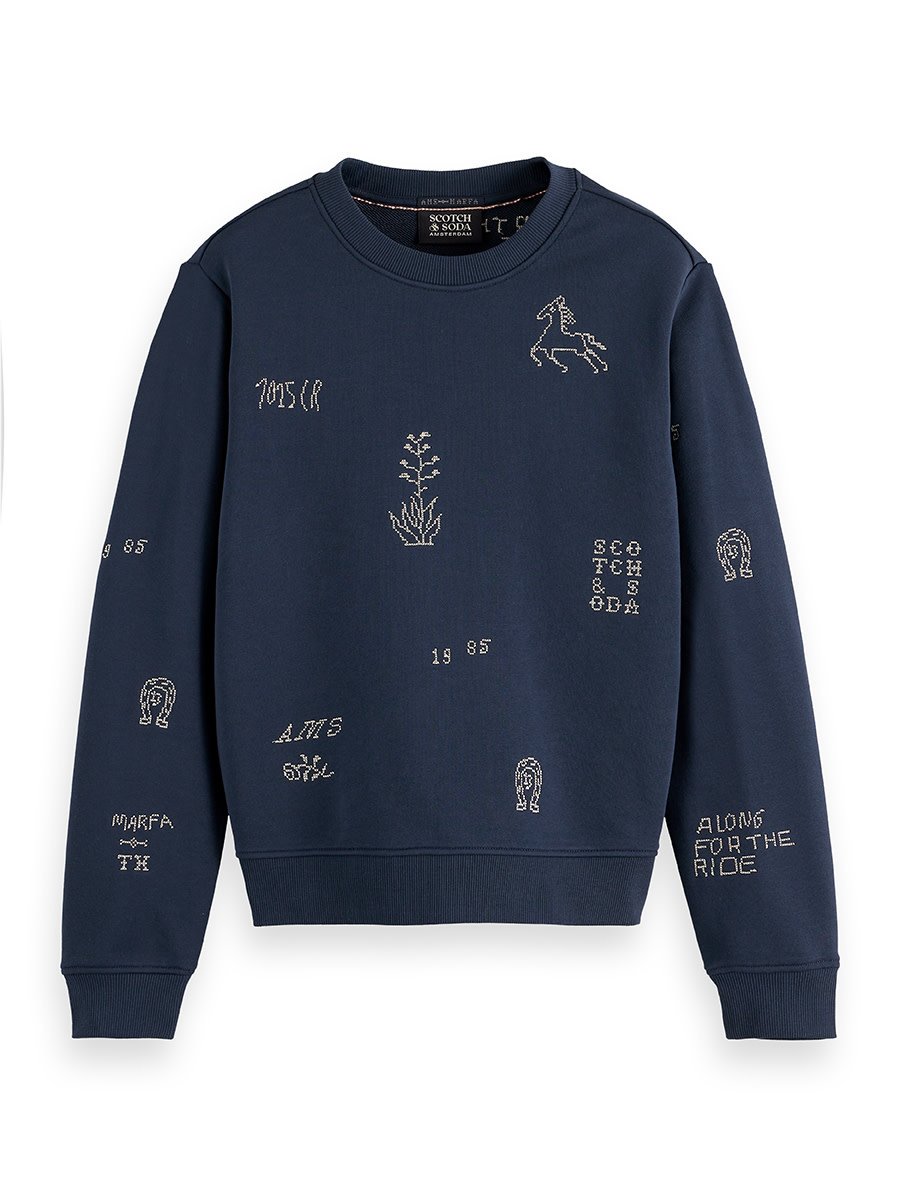 Chandail Scotch & Soda molletonné gris charcoal avec broderies beiges