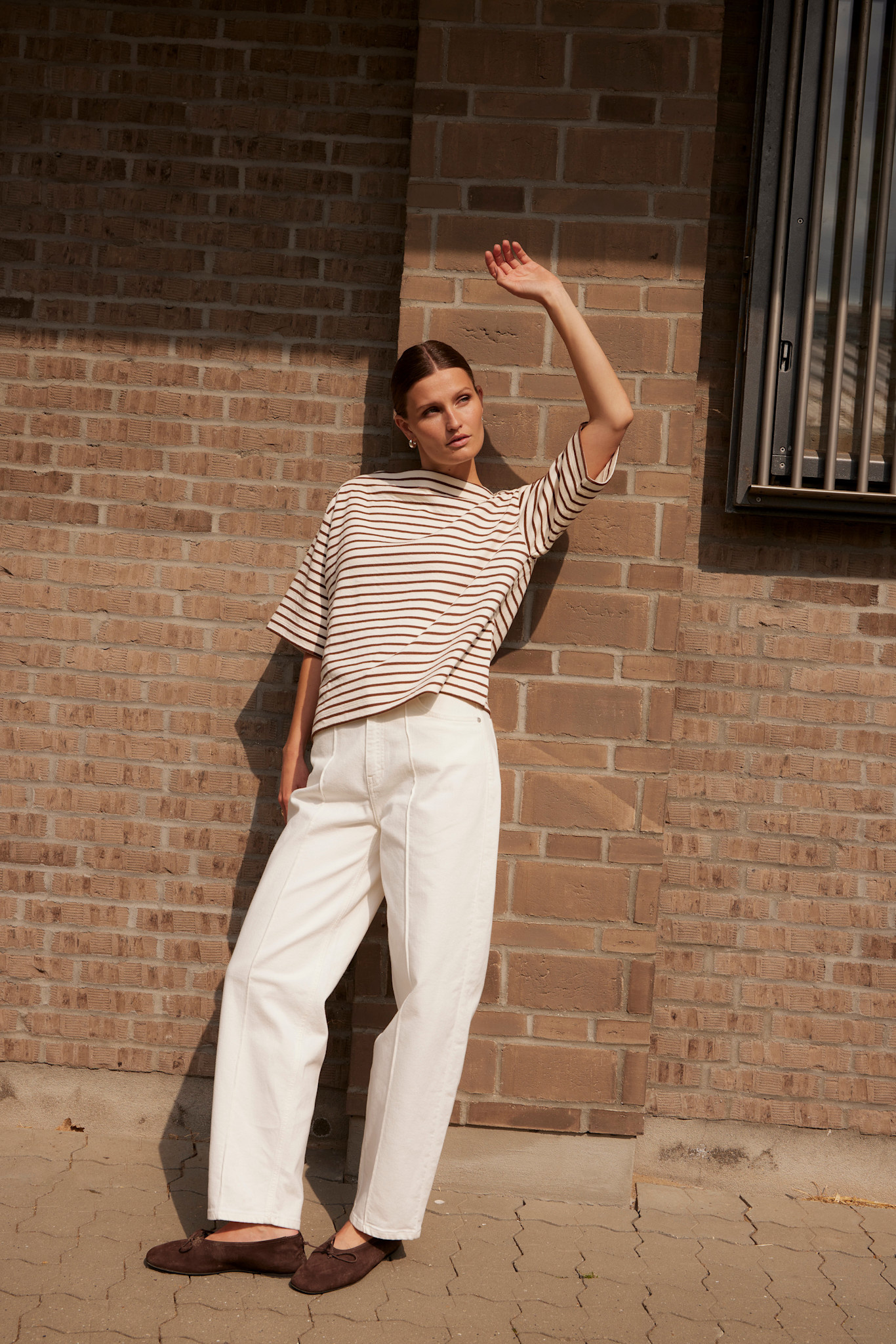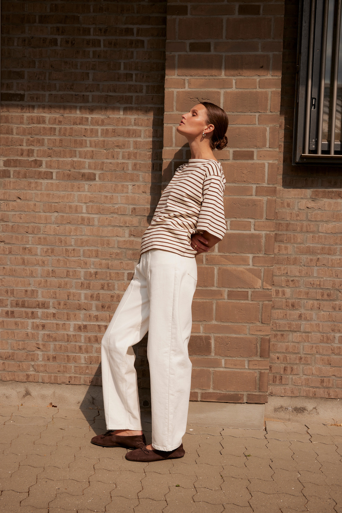 Chandail Soaked Ingina molletonné écru rayé brun cappuccino