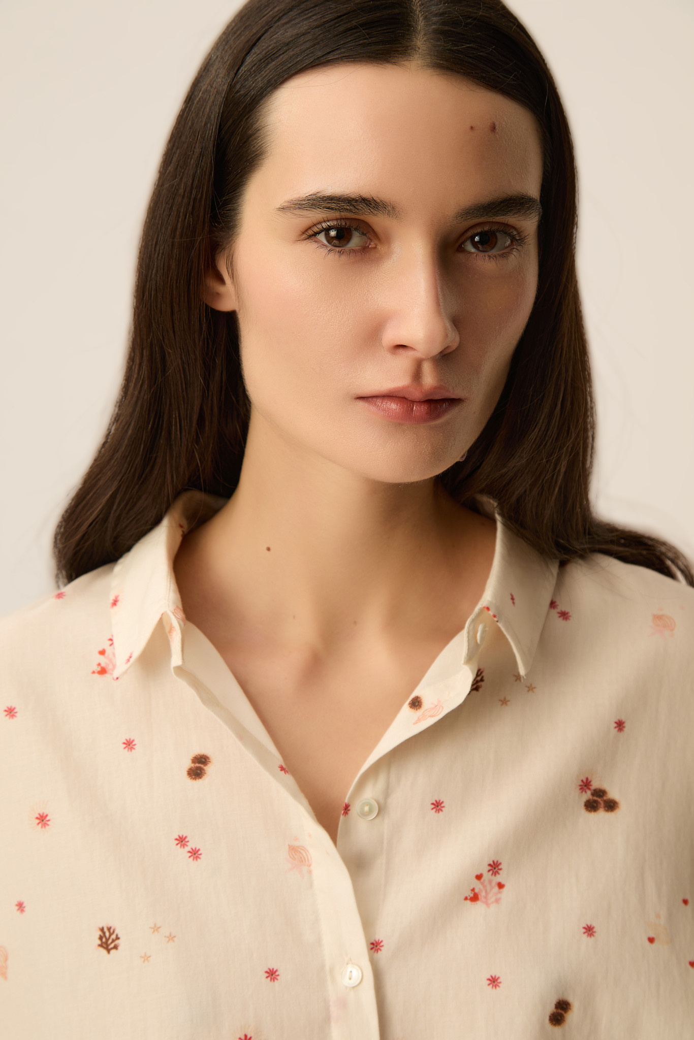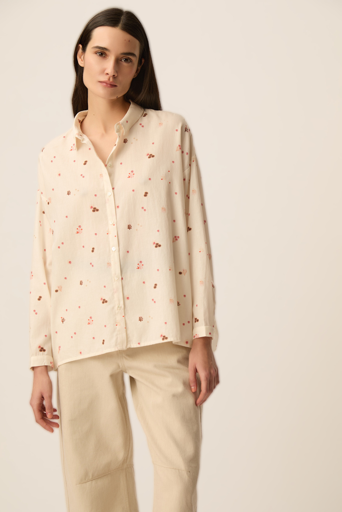 Chemise Des Petits Hauts Sparky écrue à col classique à petits imprimés Crabbie rouge homard