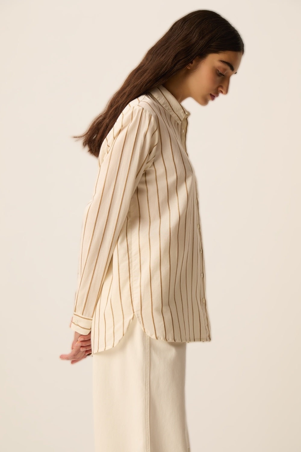 Chemise Des Petits Hauts Tinette à col classique écrue rayée jaune ocre lurex