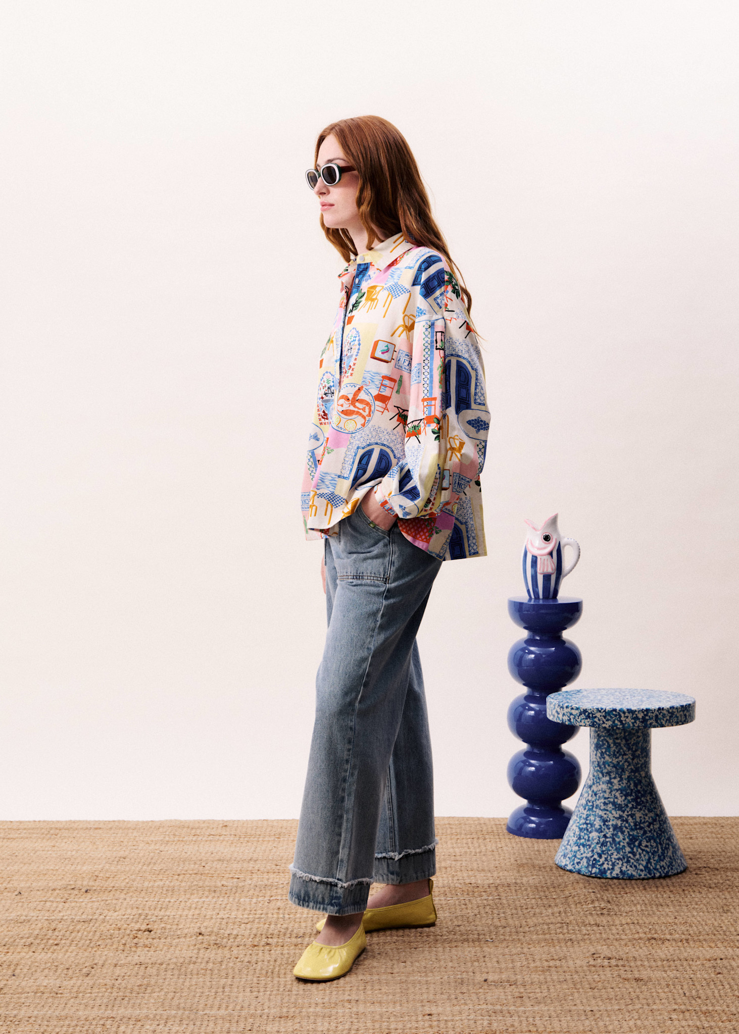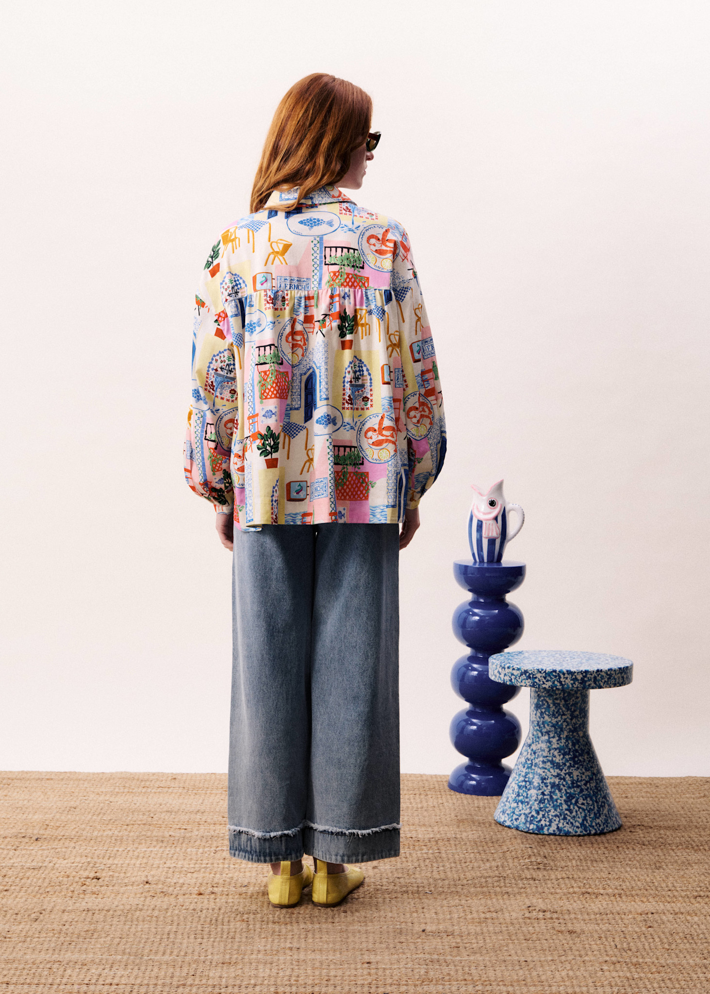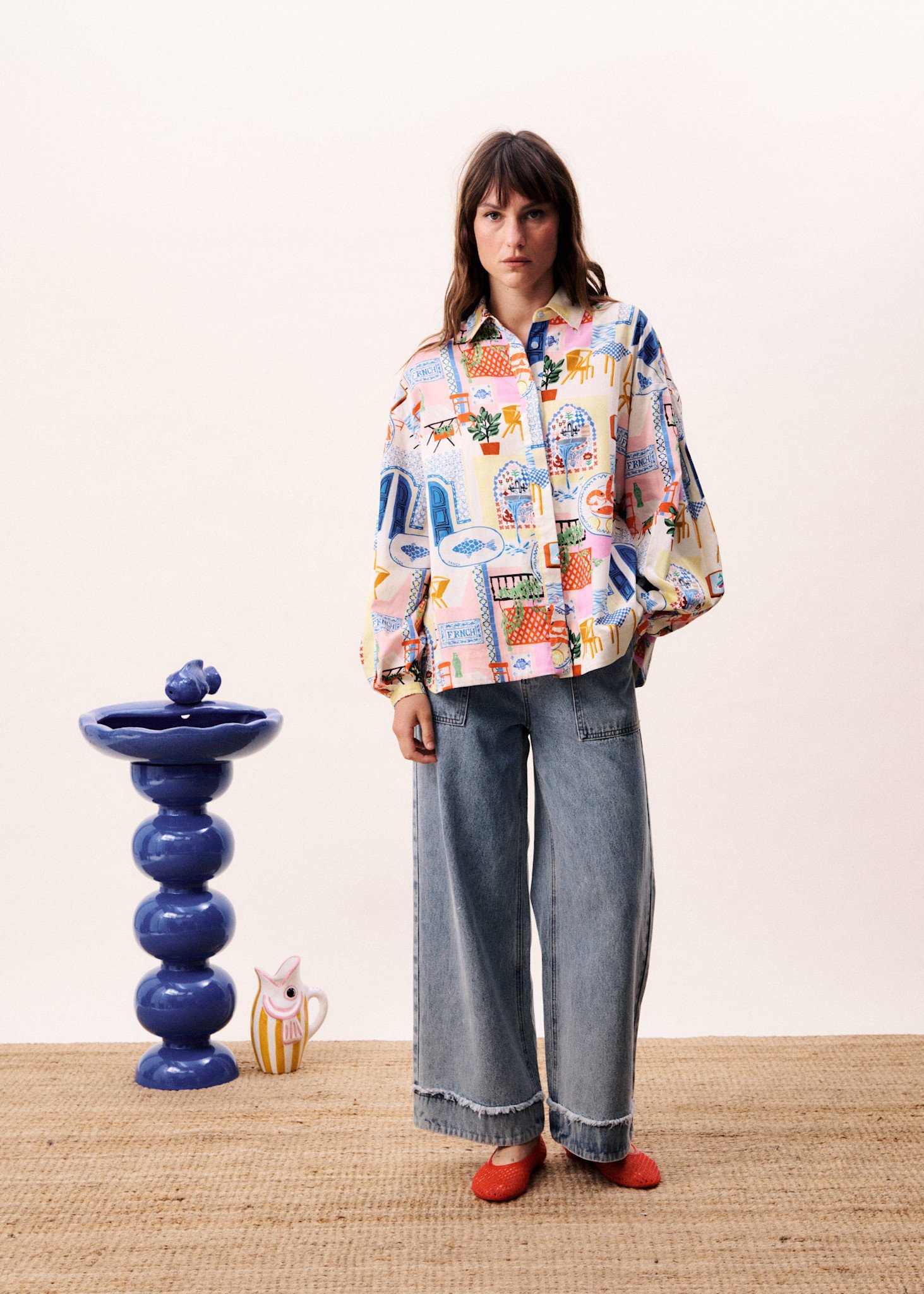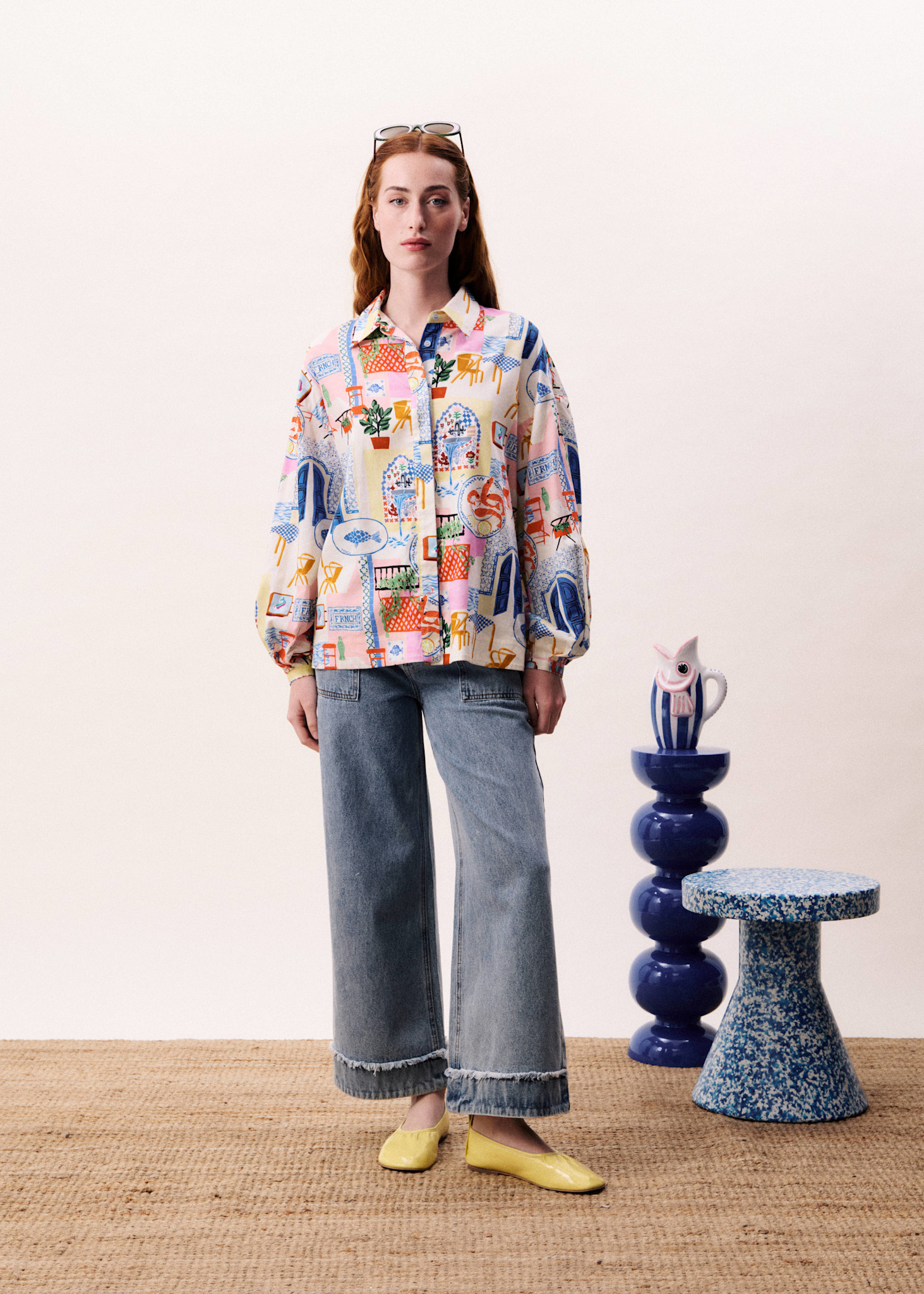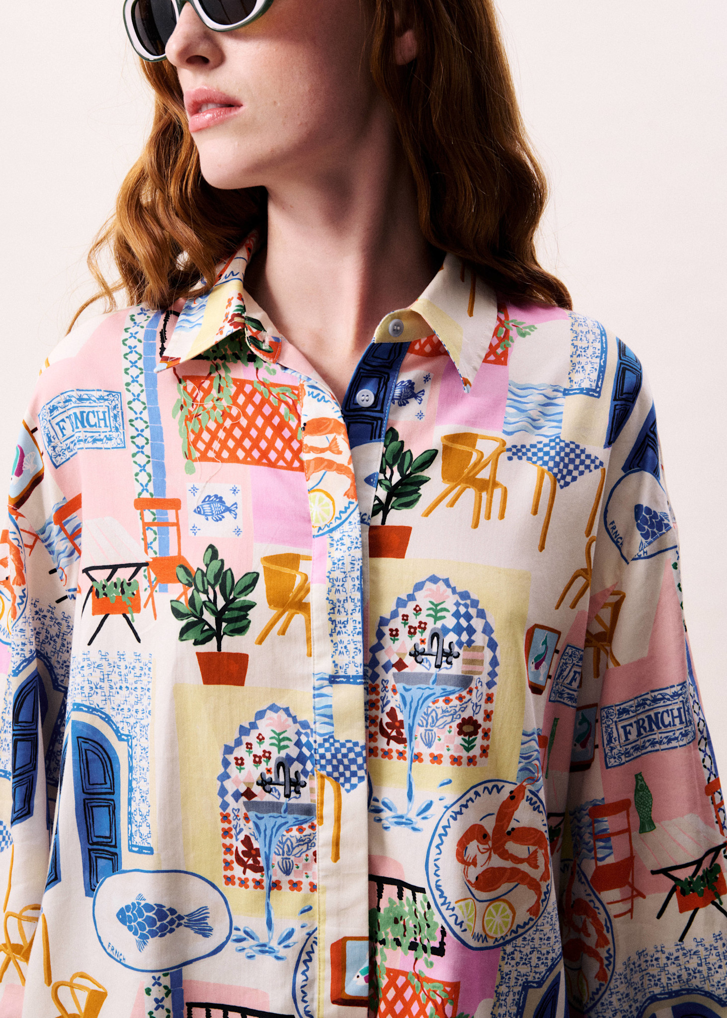 Chemise Frnch Paris Topaze imprimée fruits de la mer bleu & rouge multi