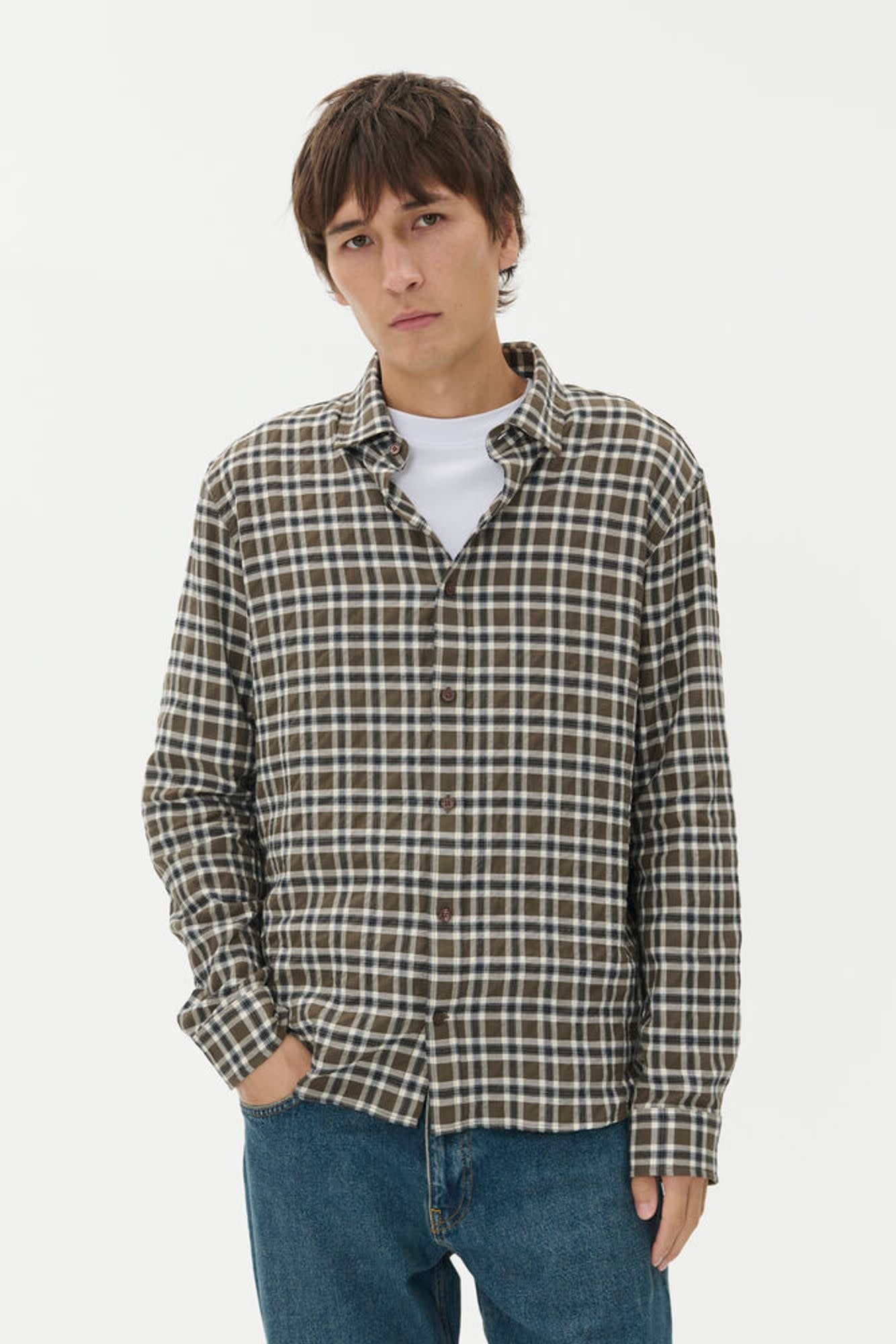Chemise Matinique Christaldo à carreaux olive crème et noir