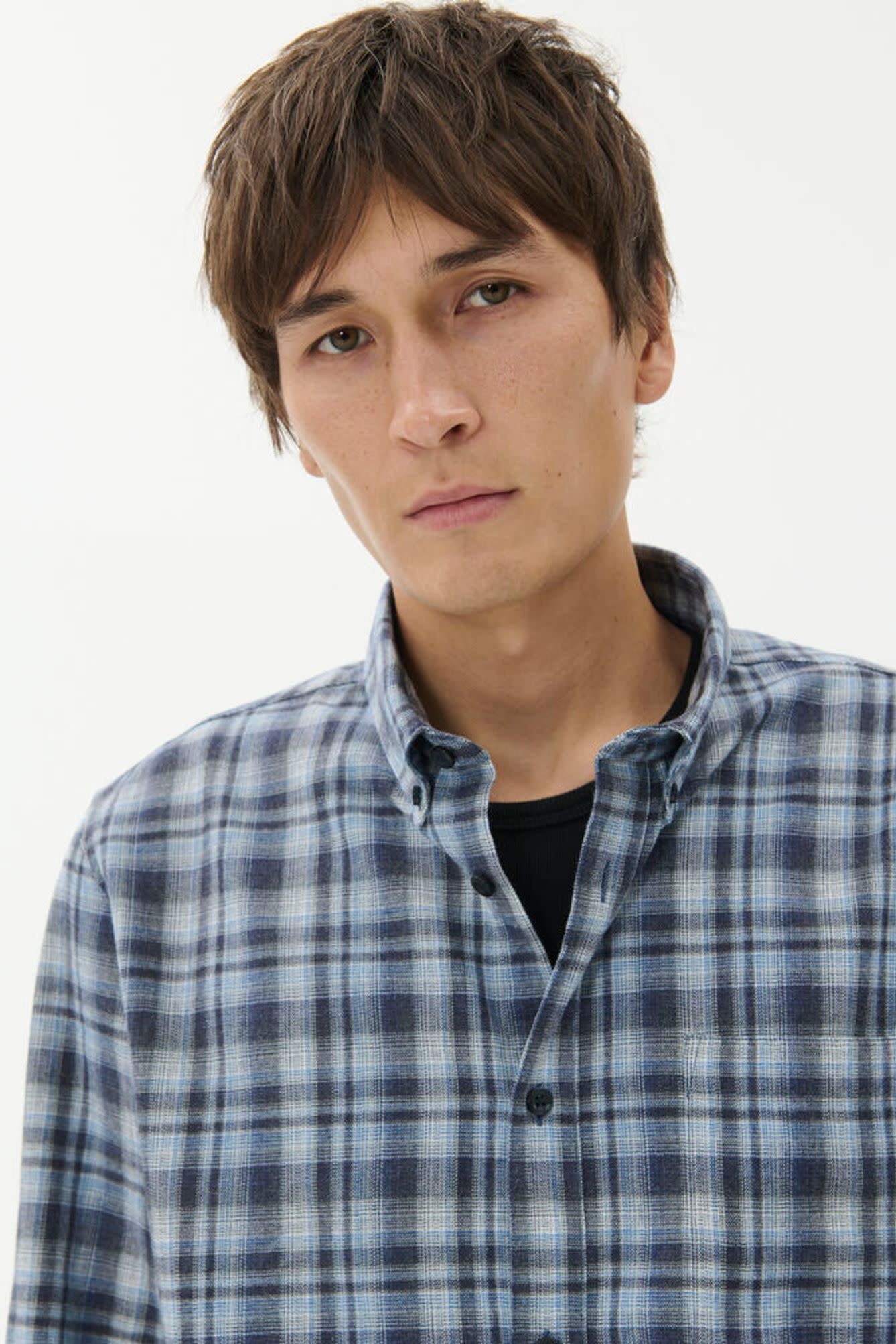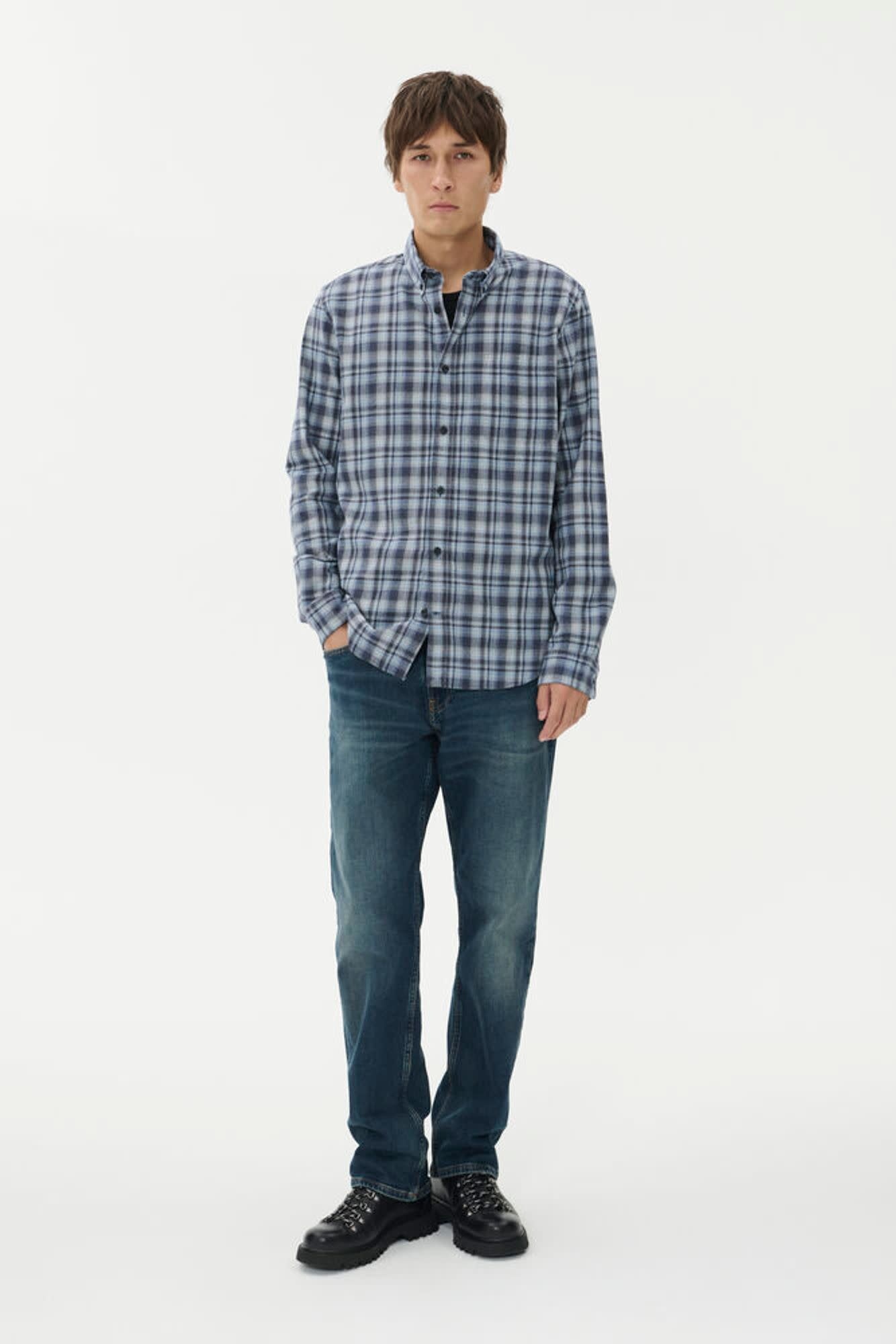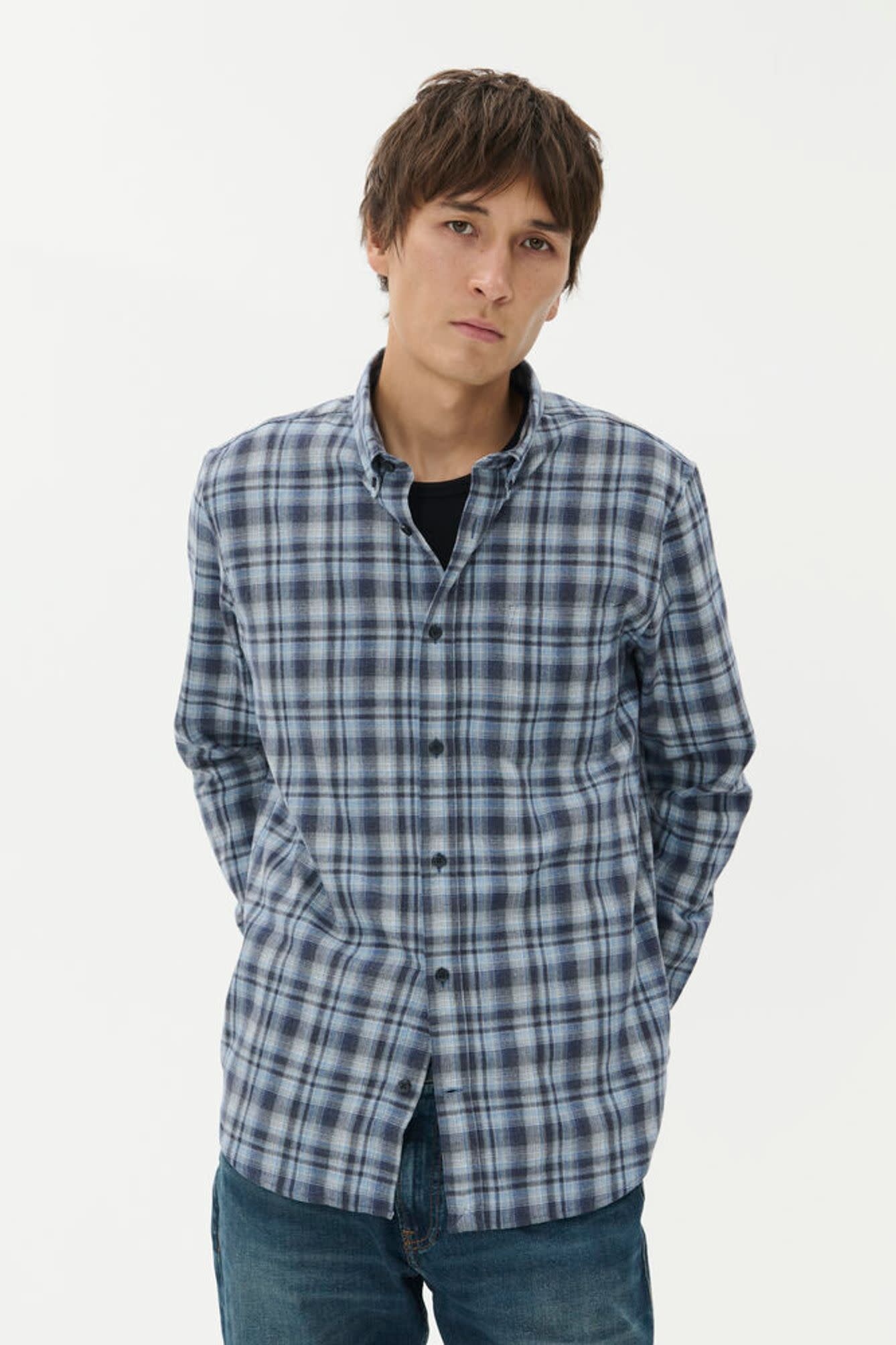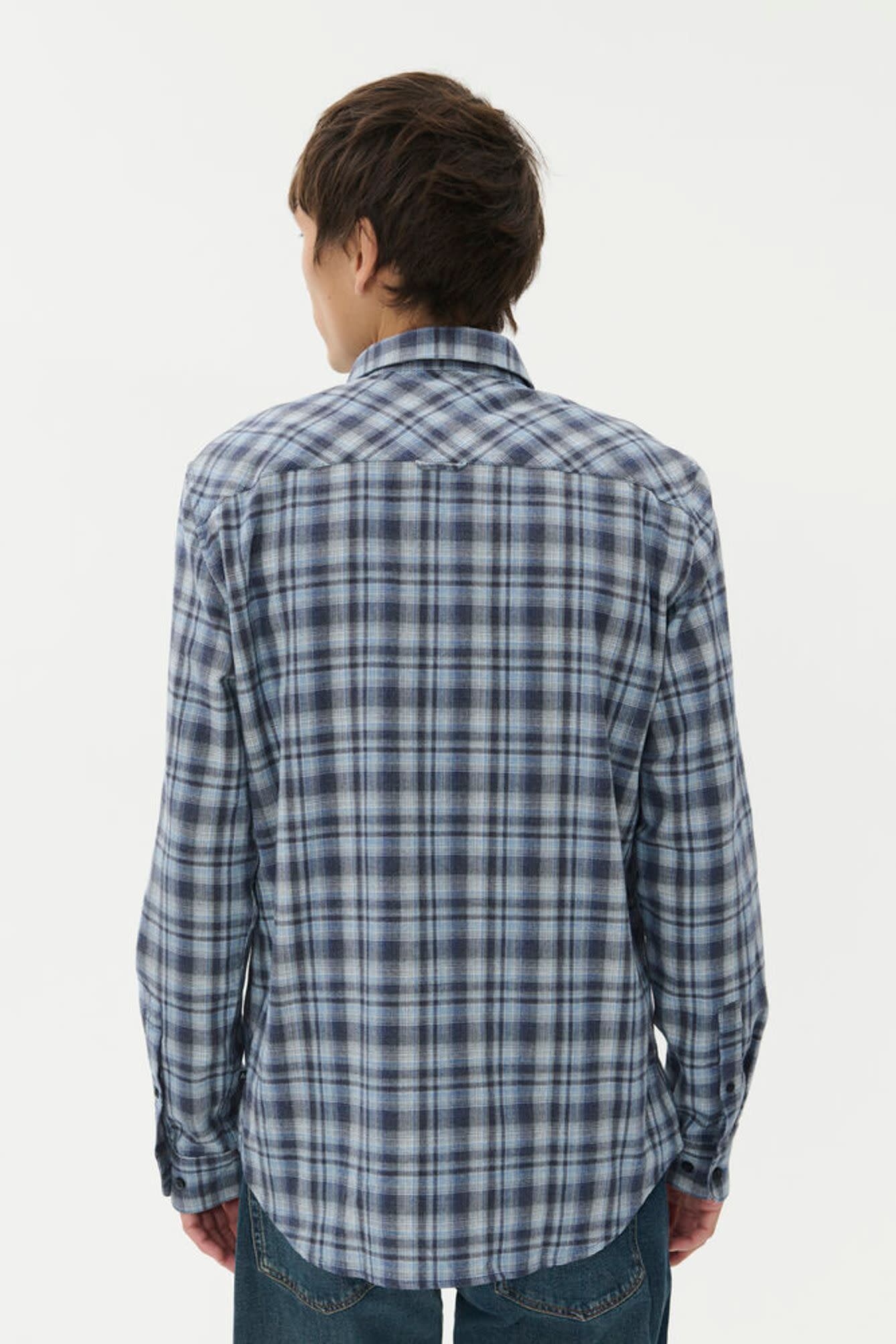 Chemise Matinique Trostol en flanelle à carreaux gris & bleu