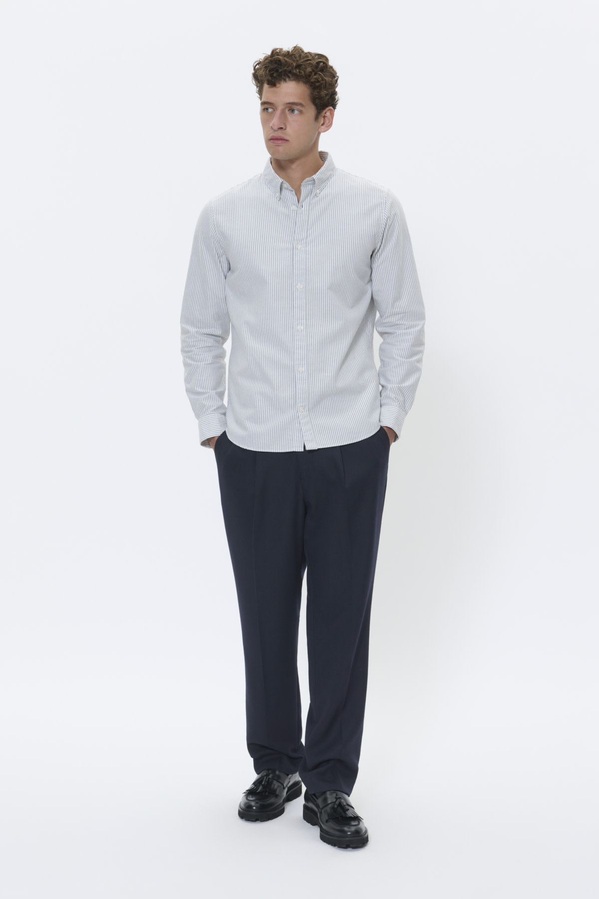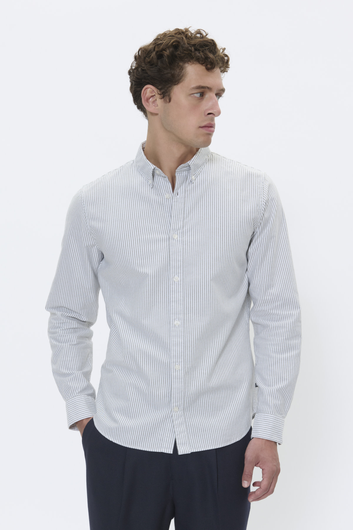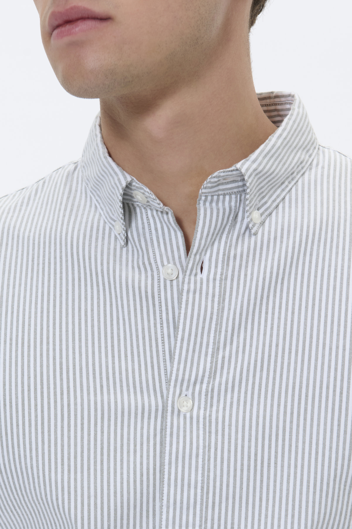 Chemise Matinique Trostol Oxford rayée vert olive & blanche