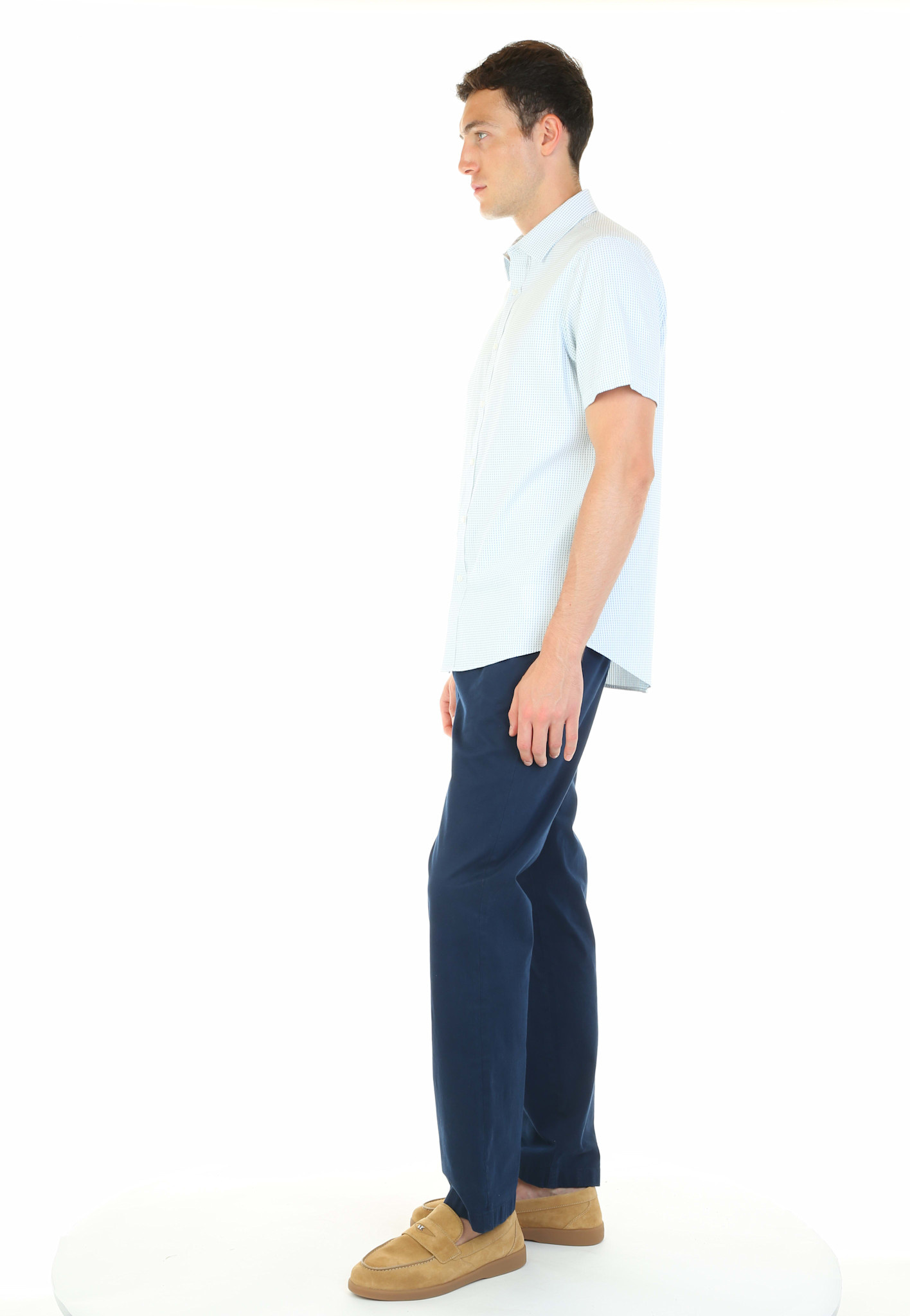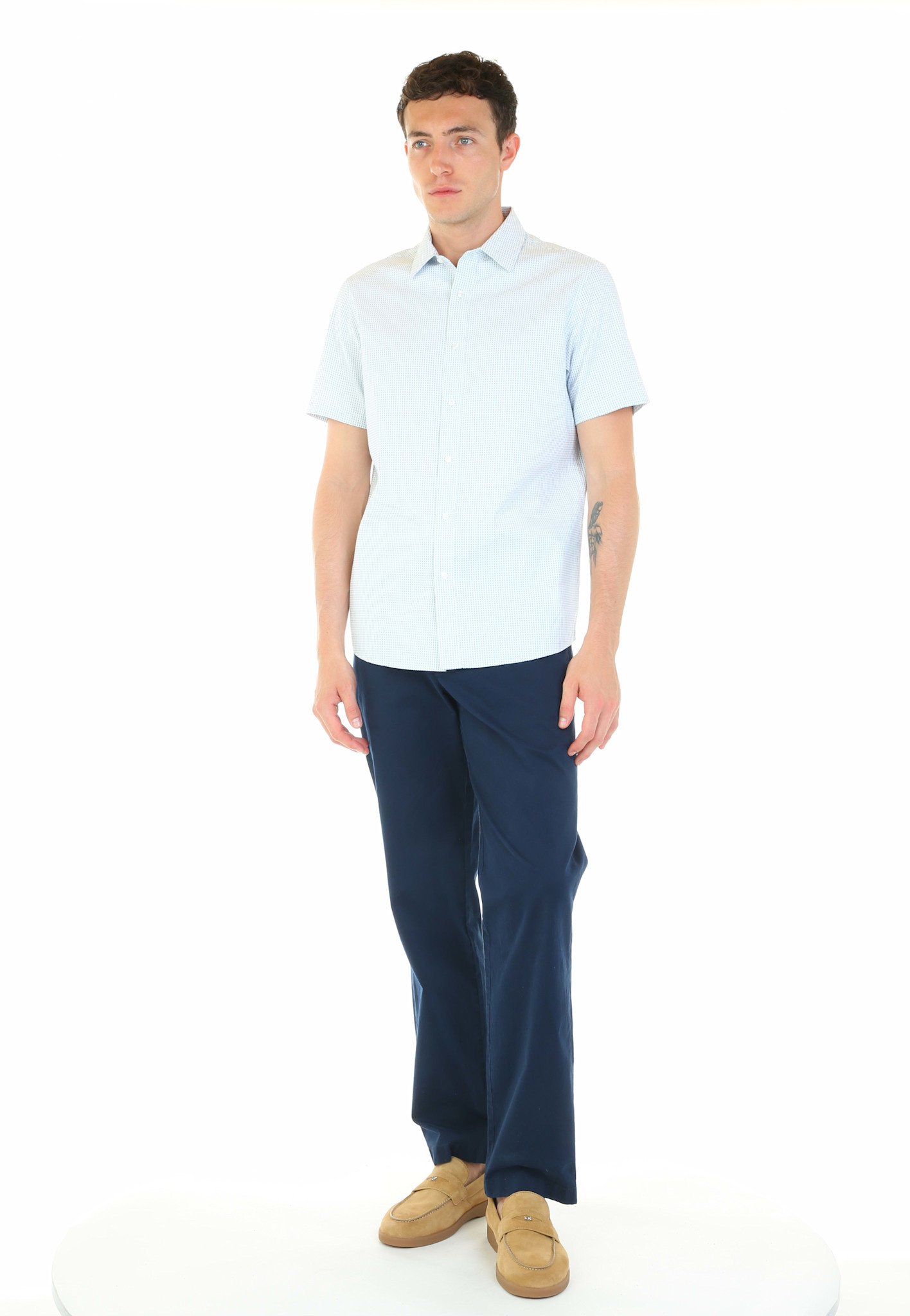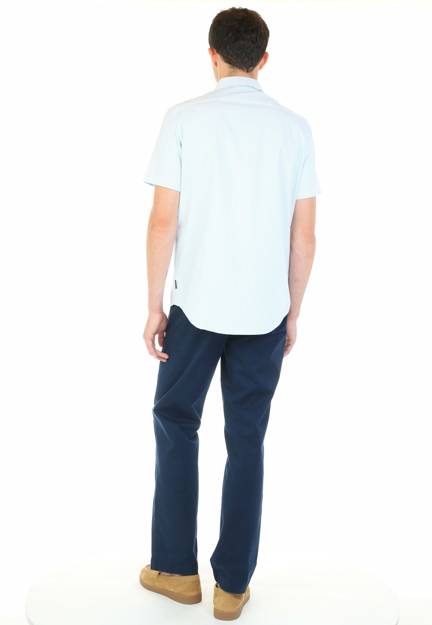 Chemise Michael Kors à manches courtes blanche à petits carrés bleus tissés