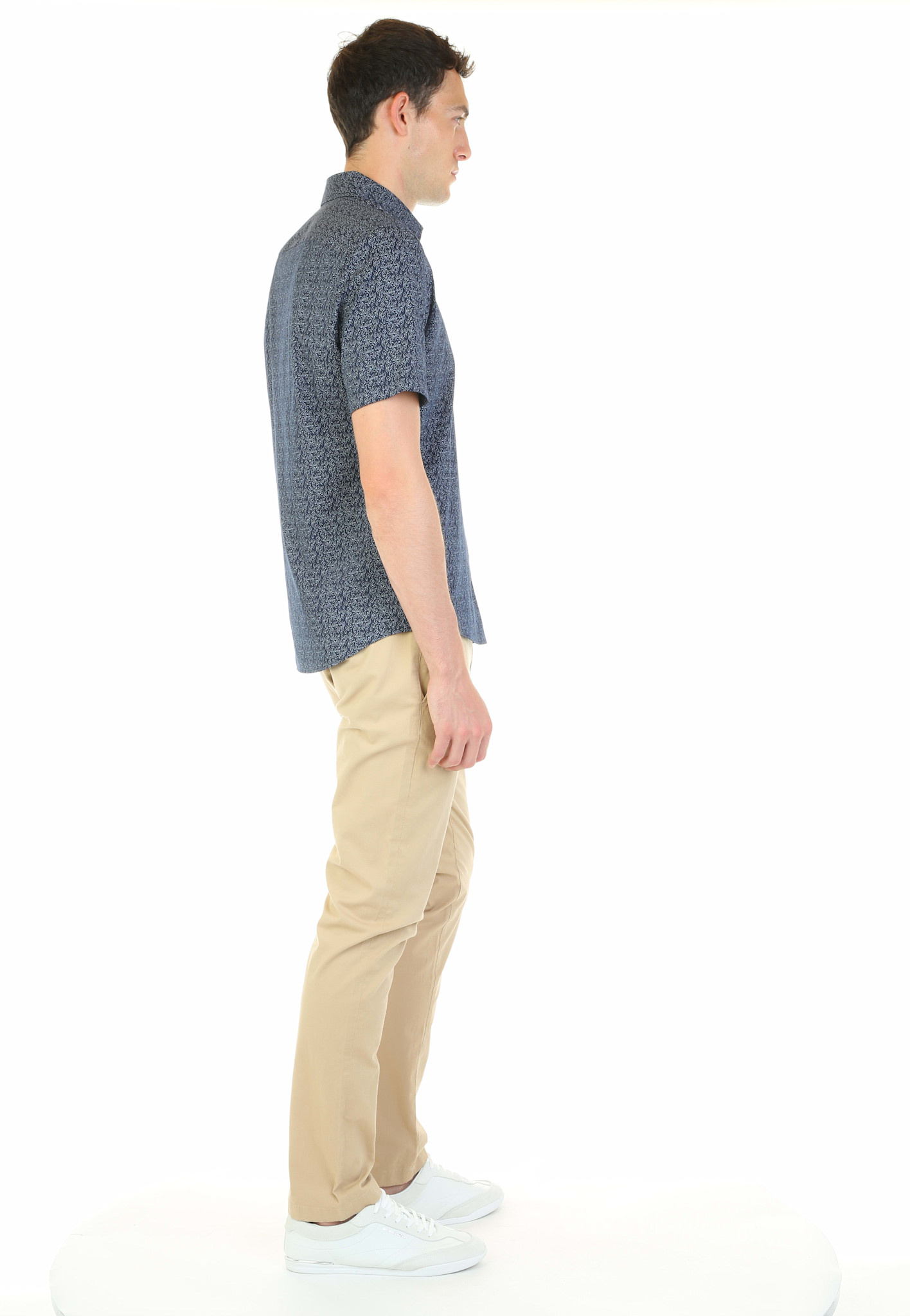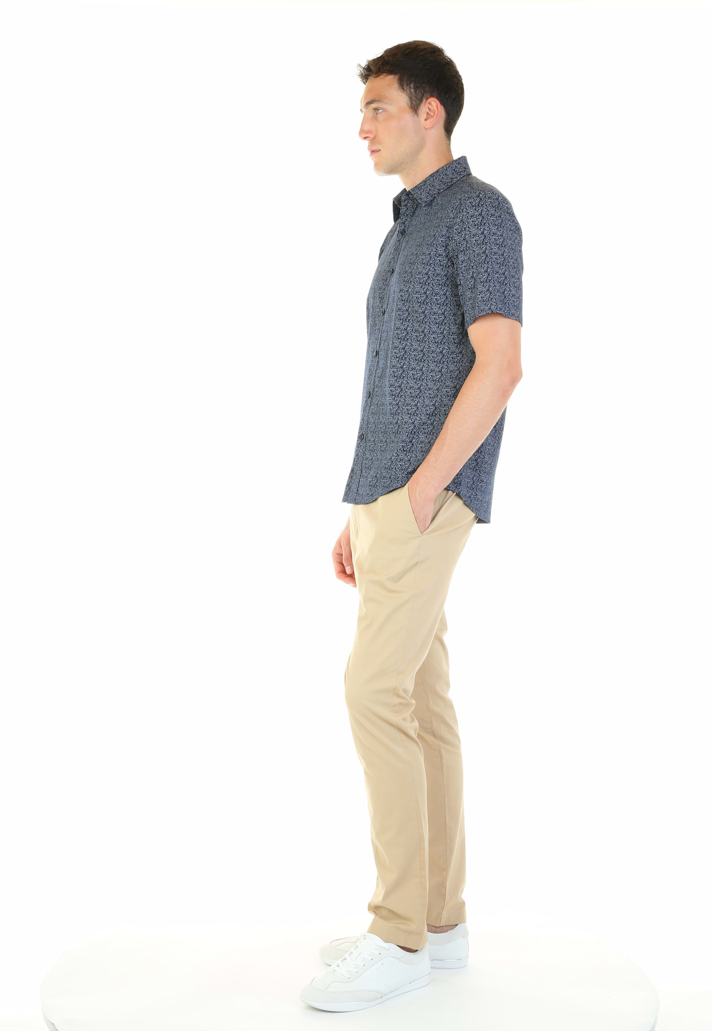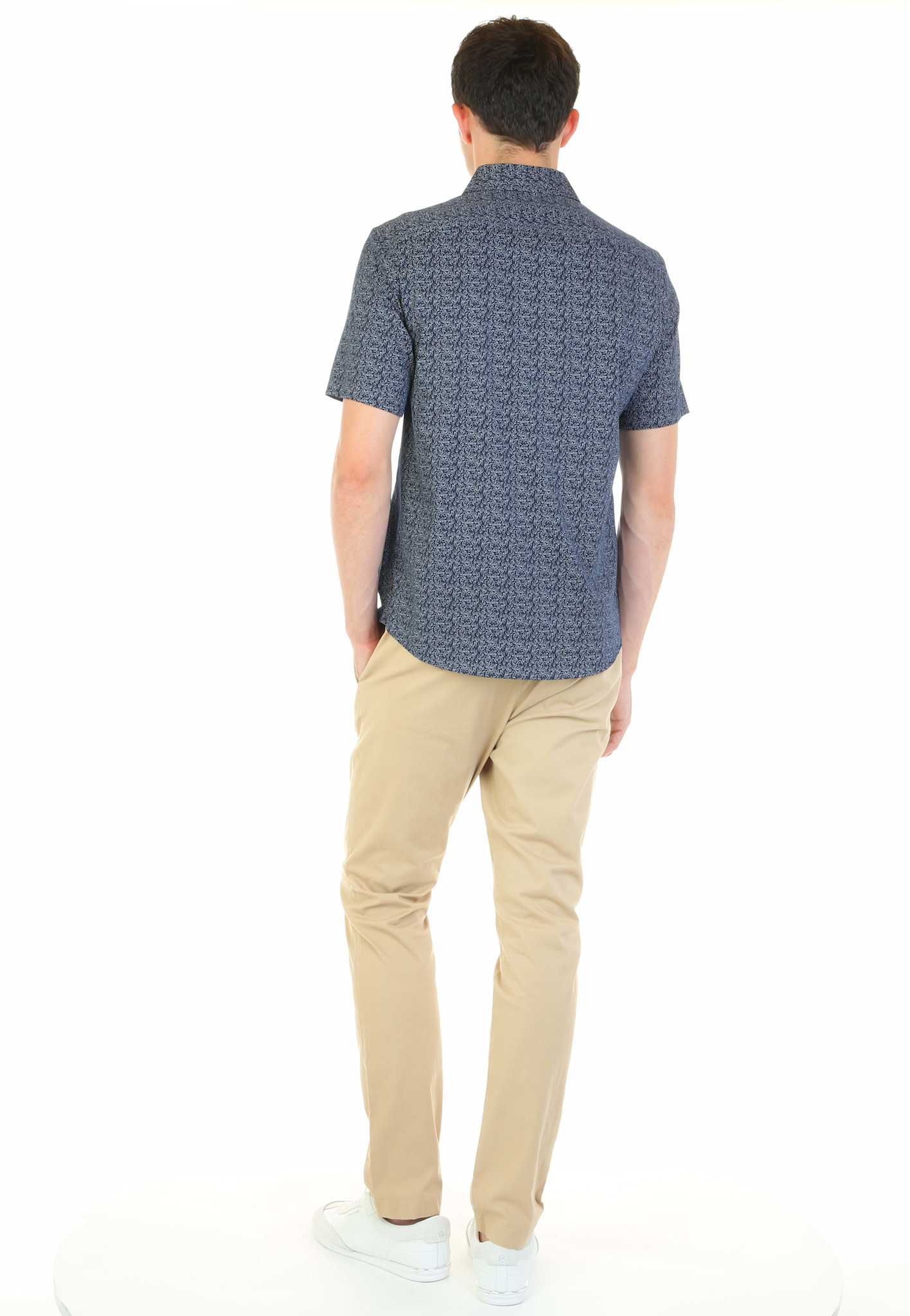 Chemise Michael Kors à manches courtes en jersey bleu marine à petites feuilles bleu ciel