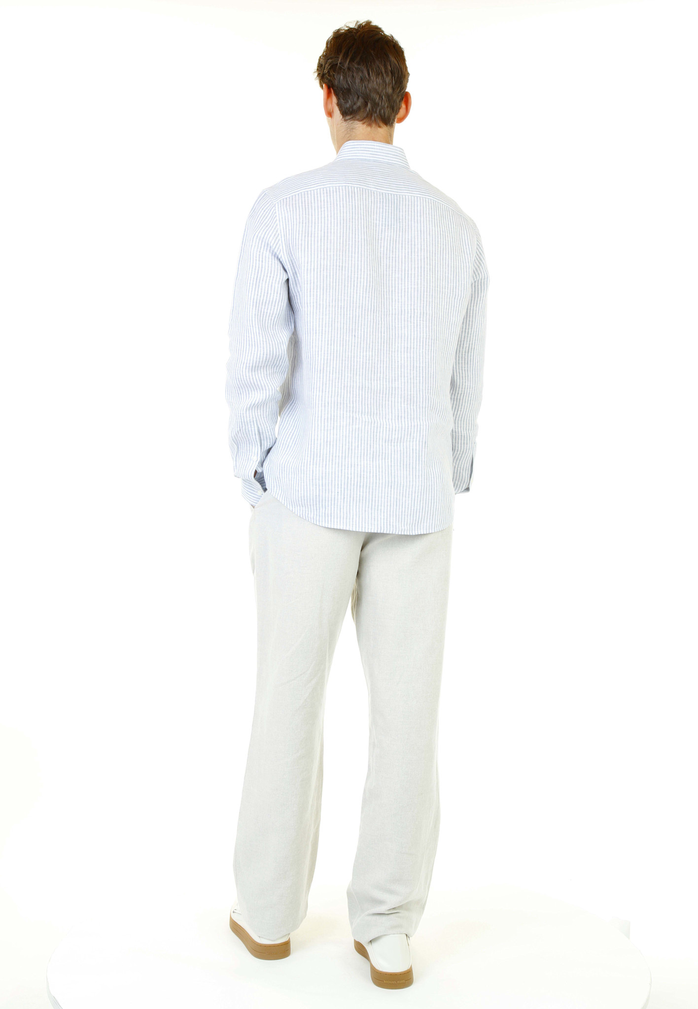 Chemise Michael Kors en lin bleu chambray rayée blanche