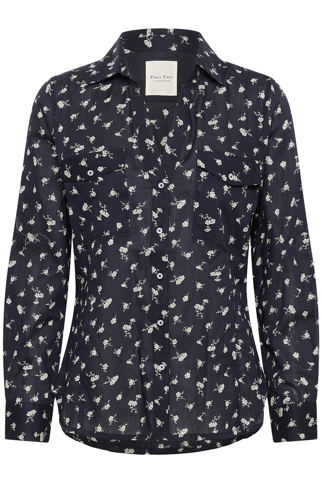 Chemise Part Two Cortnio à col classique bleu marine fleurie écrue