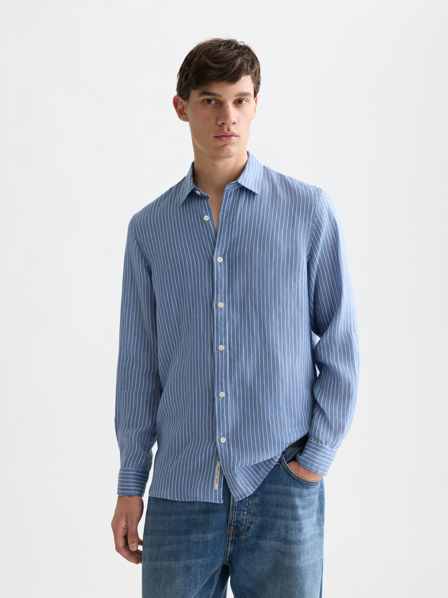 Chemise Scotch & Soda en lin bleu infini rayée