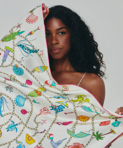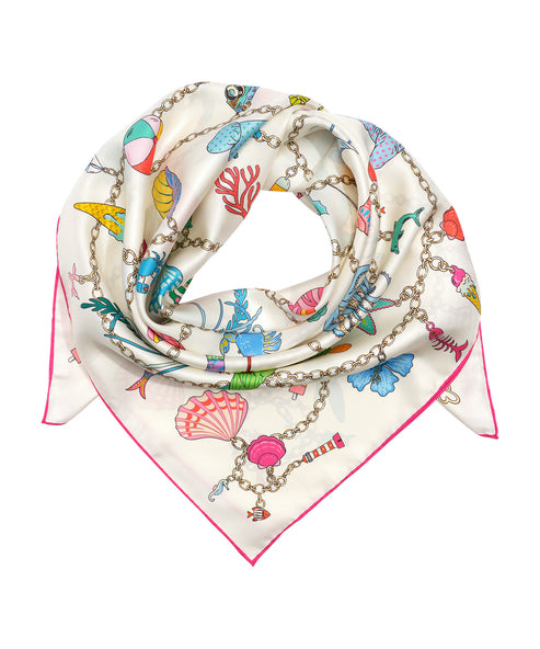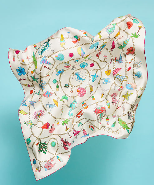 Foulard carré Echo Charmed Life ivoire imprimé marin rose & vert multi