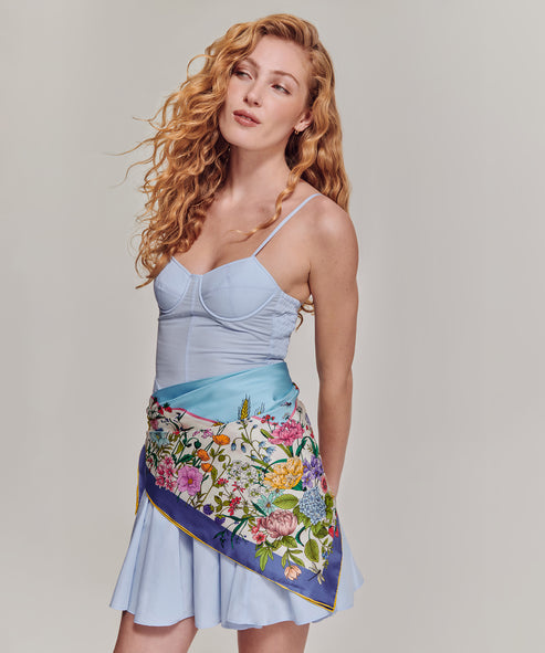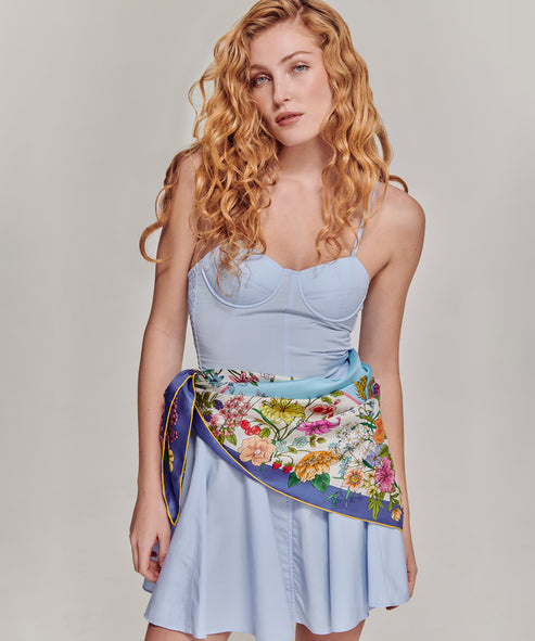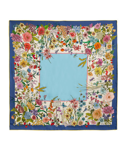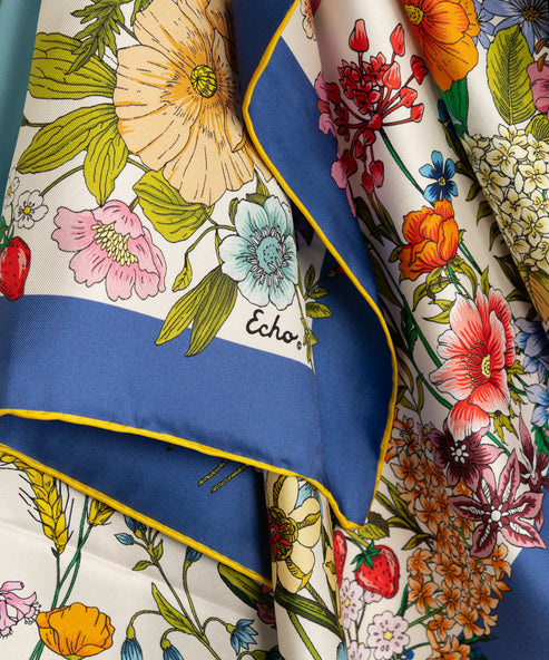 Foulard carré Echo Seasons Summer fleuri bleu & rose multi