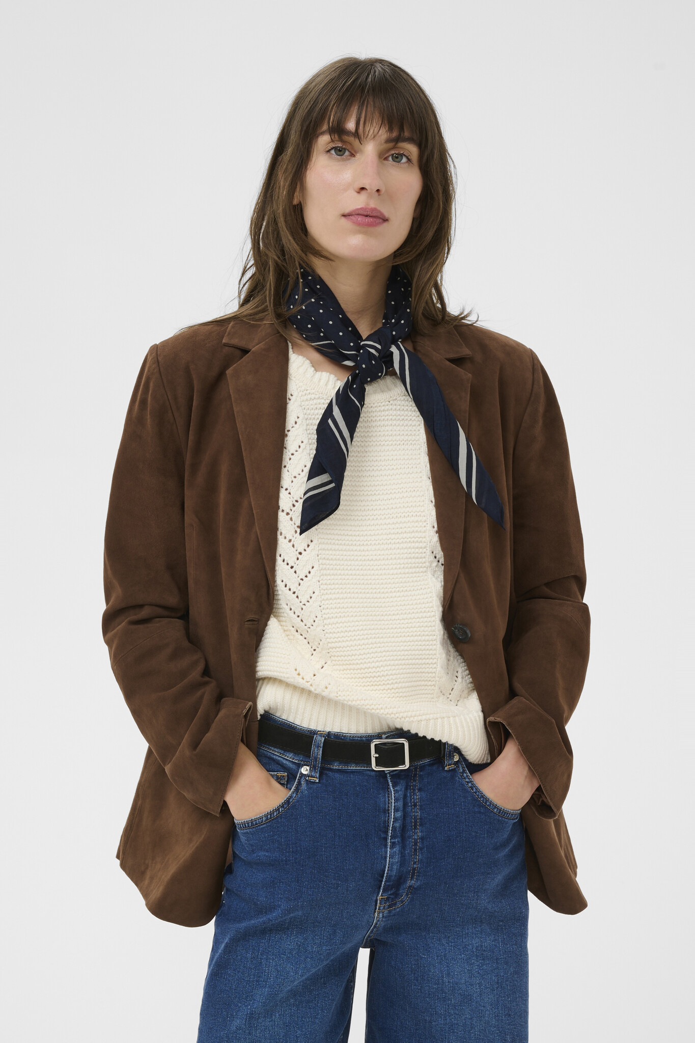 Foulard carré Part Two Phi bleu marine à pois écrus