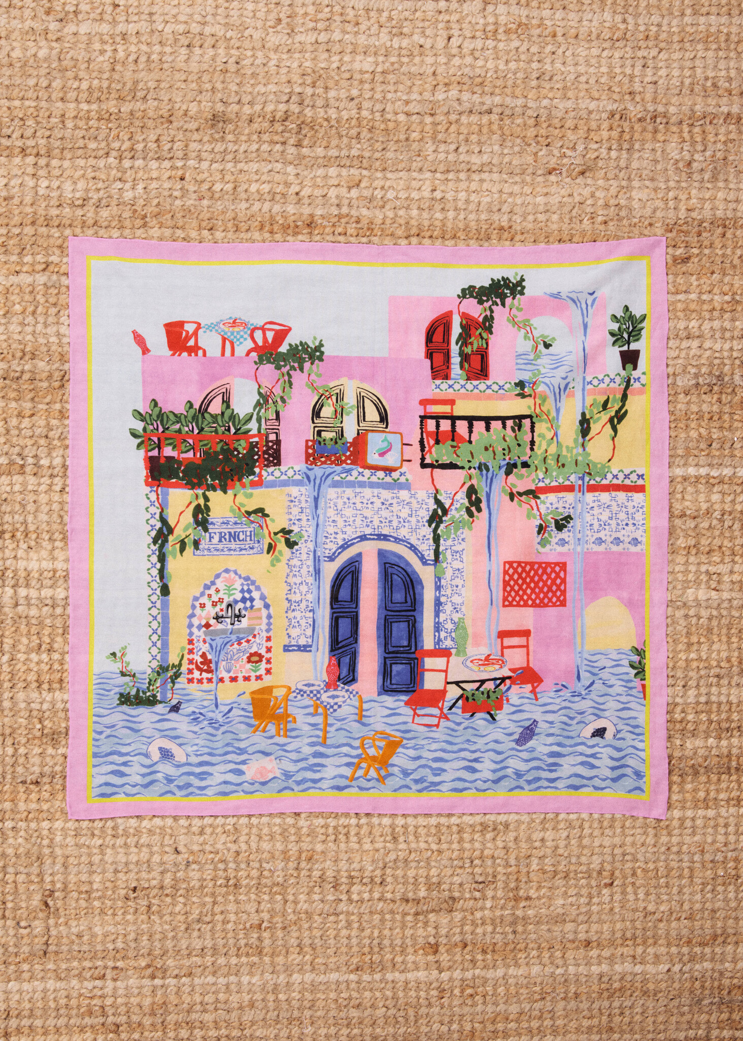 Foulard de cou Frnch Paris carré imprimé bord de l’eau
