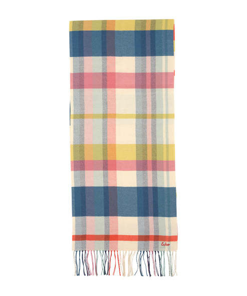 Foulard Echo à carreaux rose pommette, bleus & jaunes