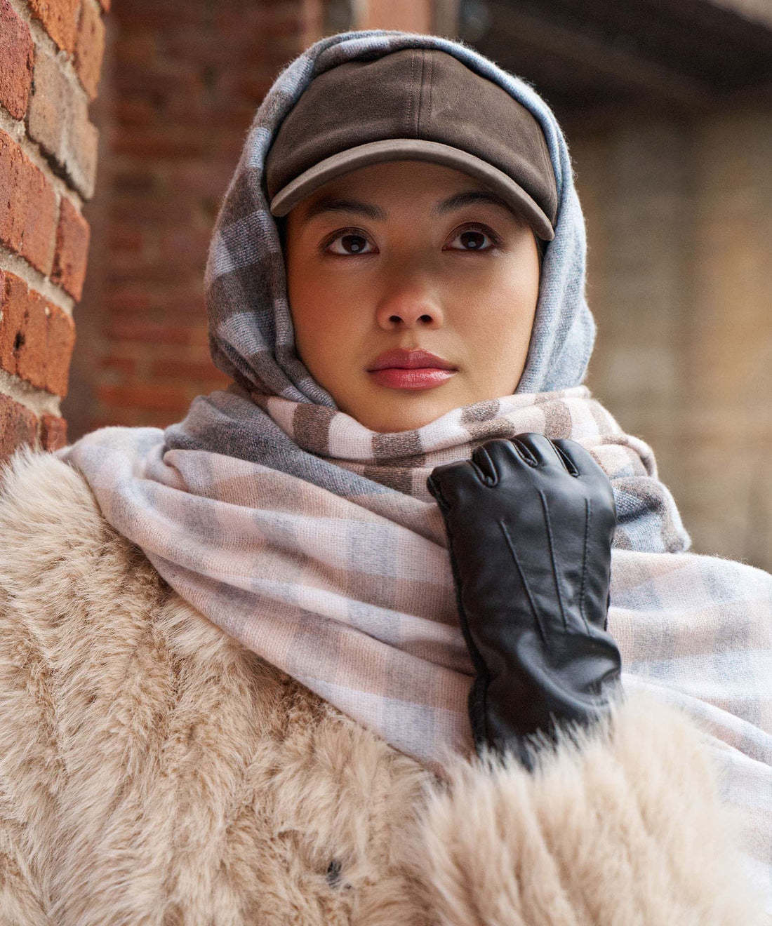 Foulard Echo à rayures & carreaux taupe, beige & gris