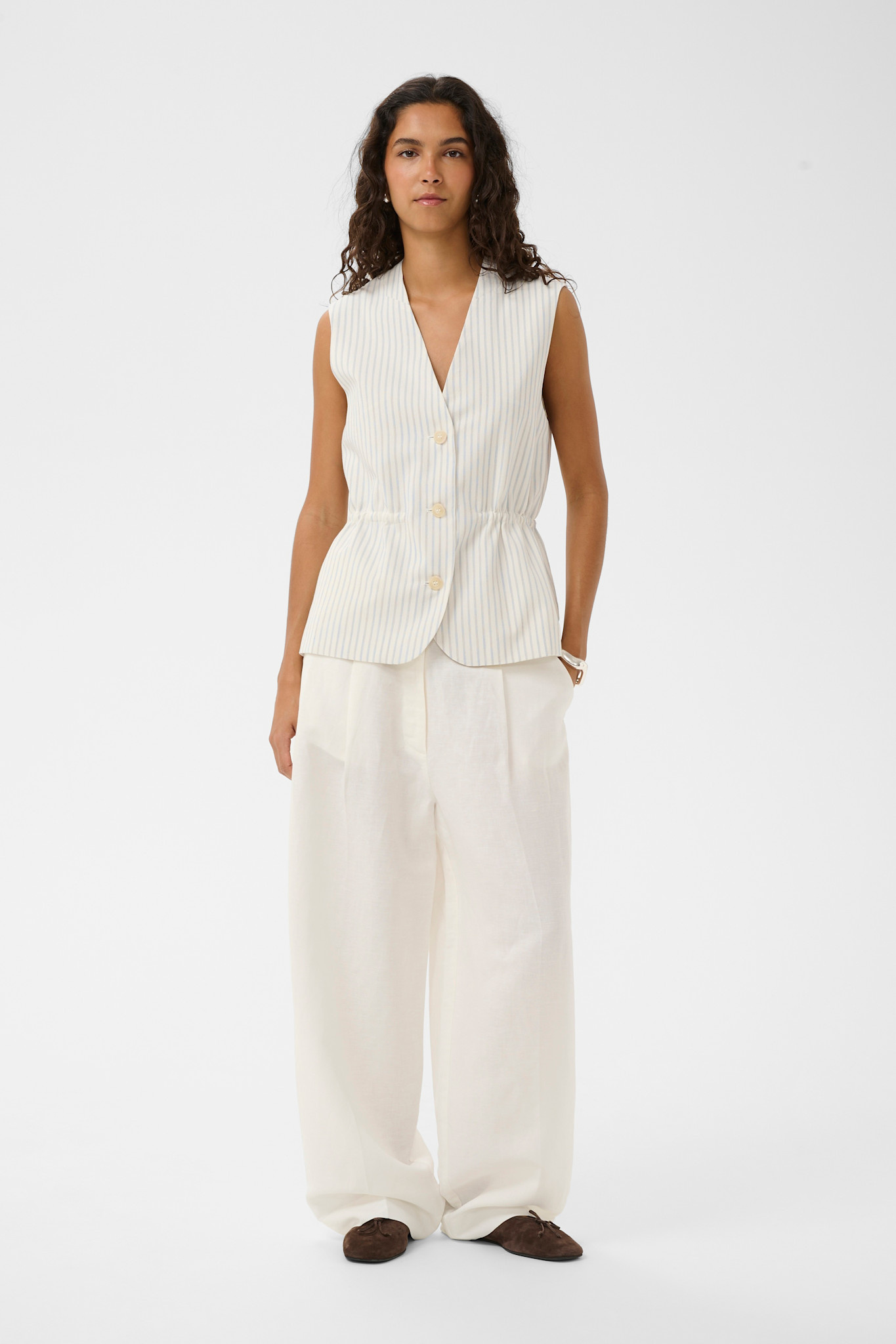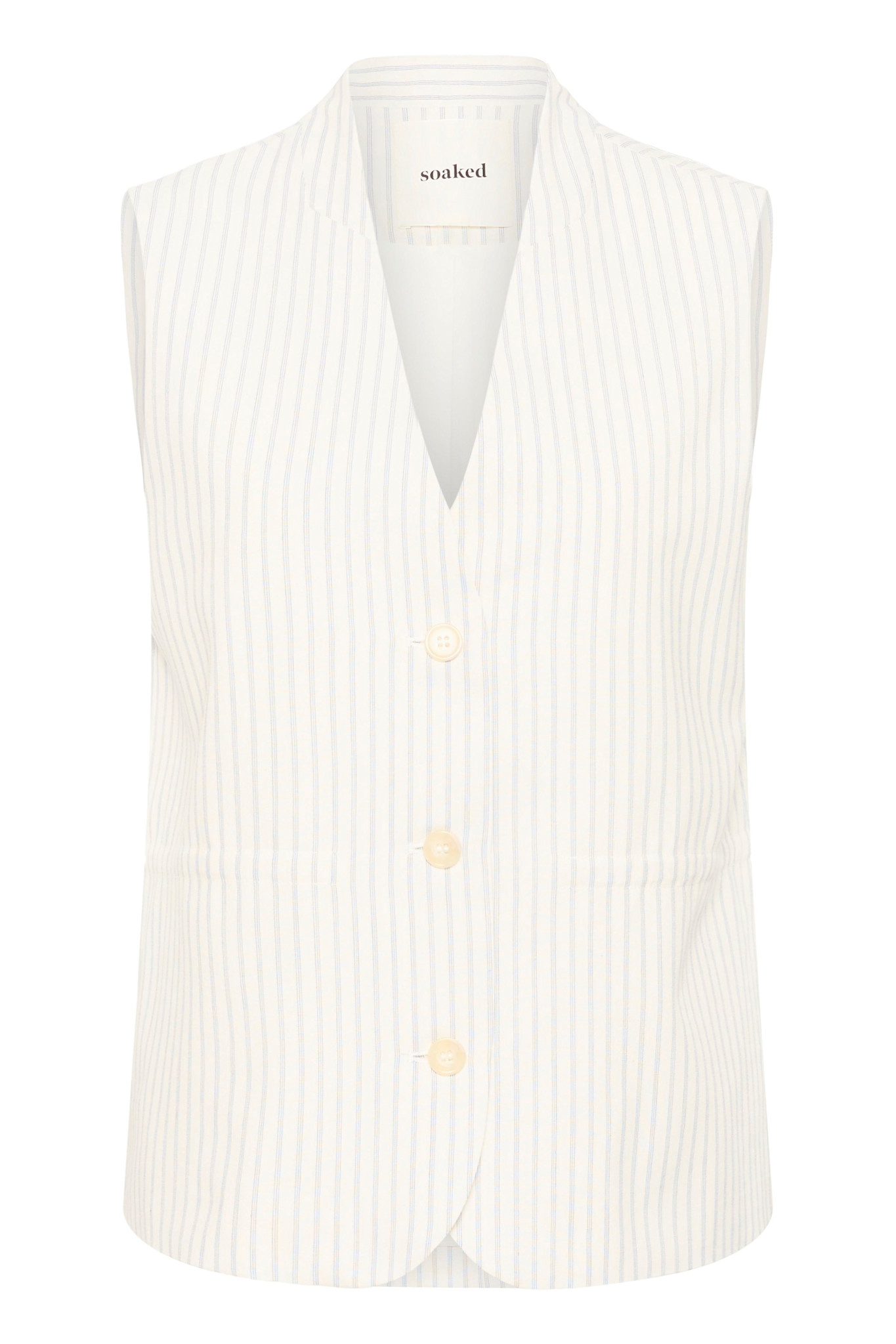 Gilet Soaked Candela à col V boutonné écru rayé bleu
