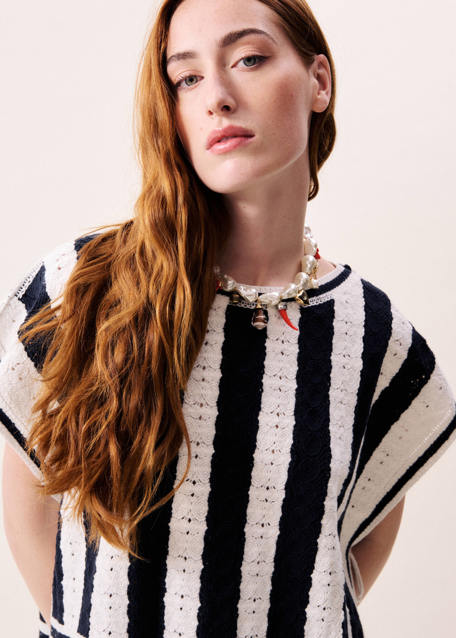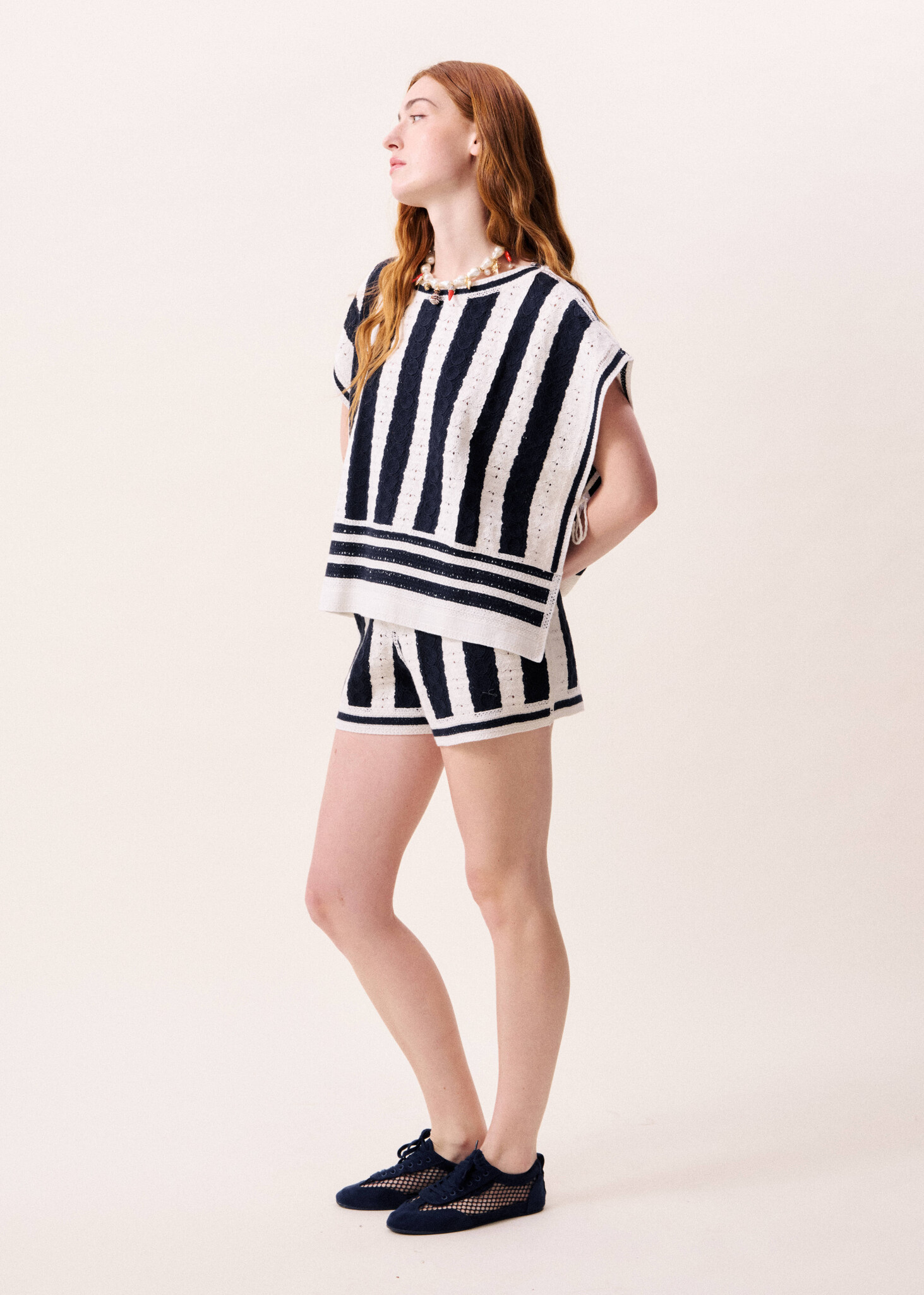 Haut Frnch Paris Debbie en crochet bleu marine rayé crème