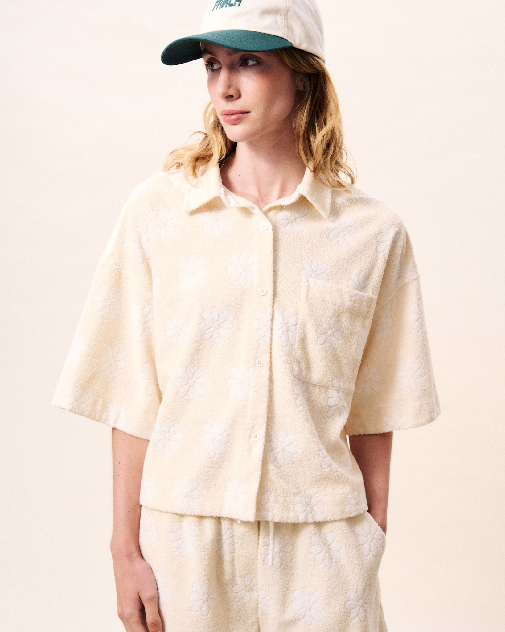 Haut Frnch Paris Houlena en ratine crème fleurie blanc