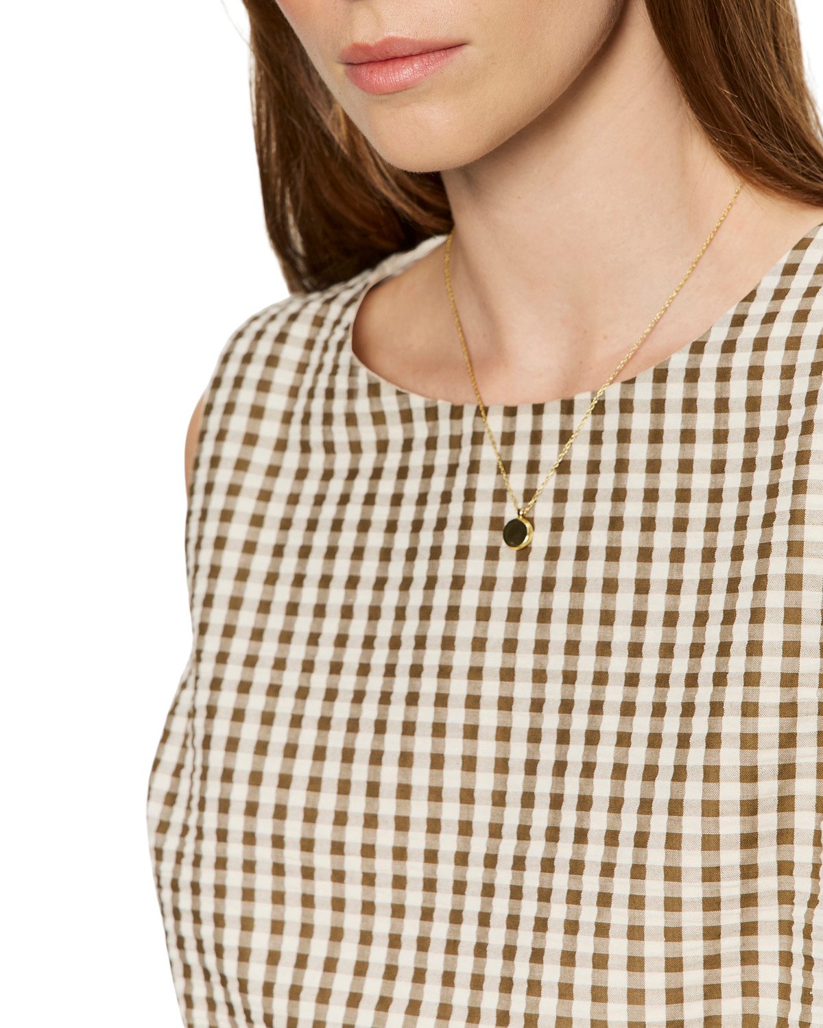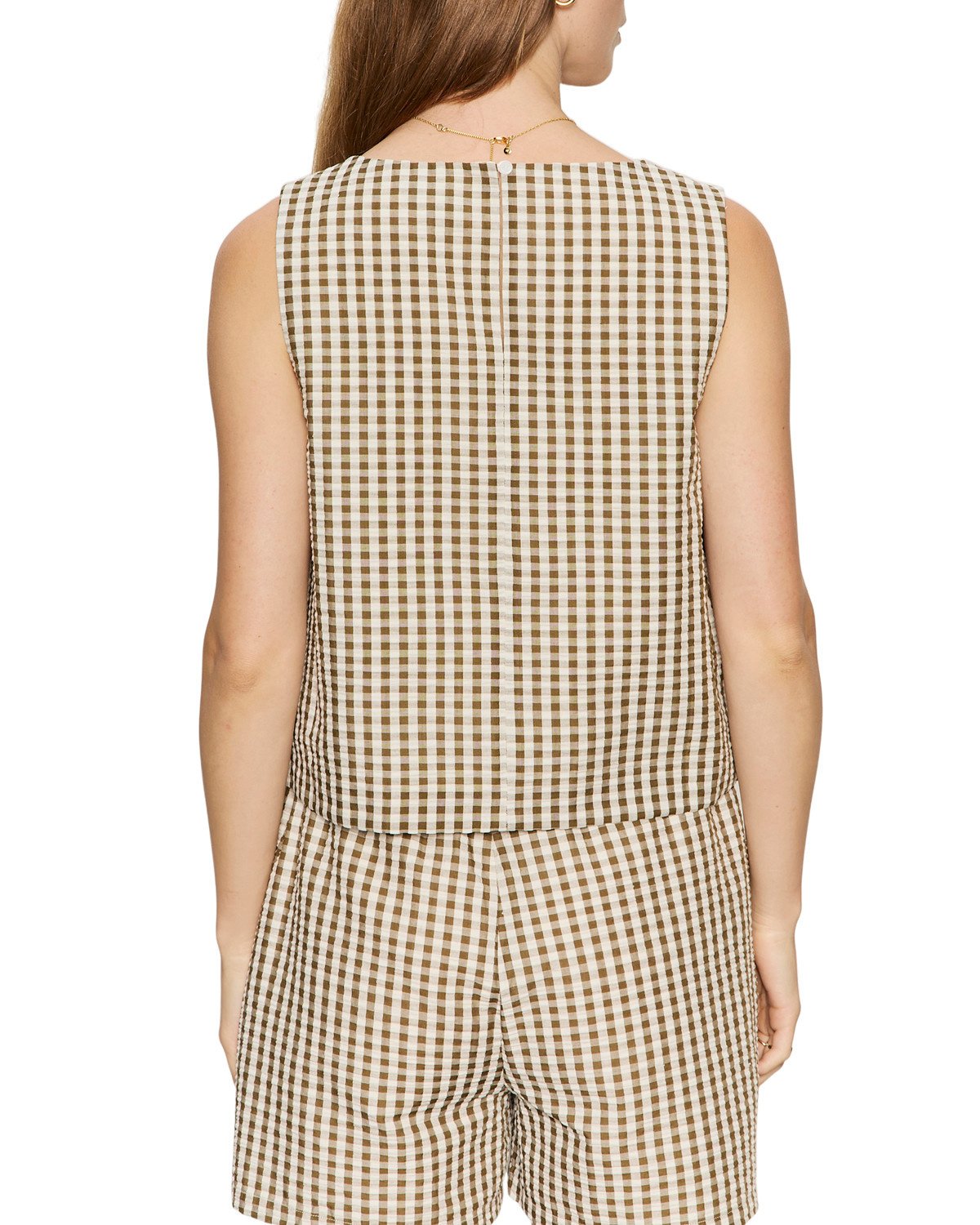 Haut Sanctuary Better Days sans manches à carreaux vichy brun khaki & écrus