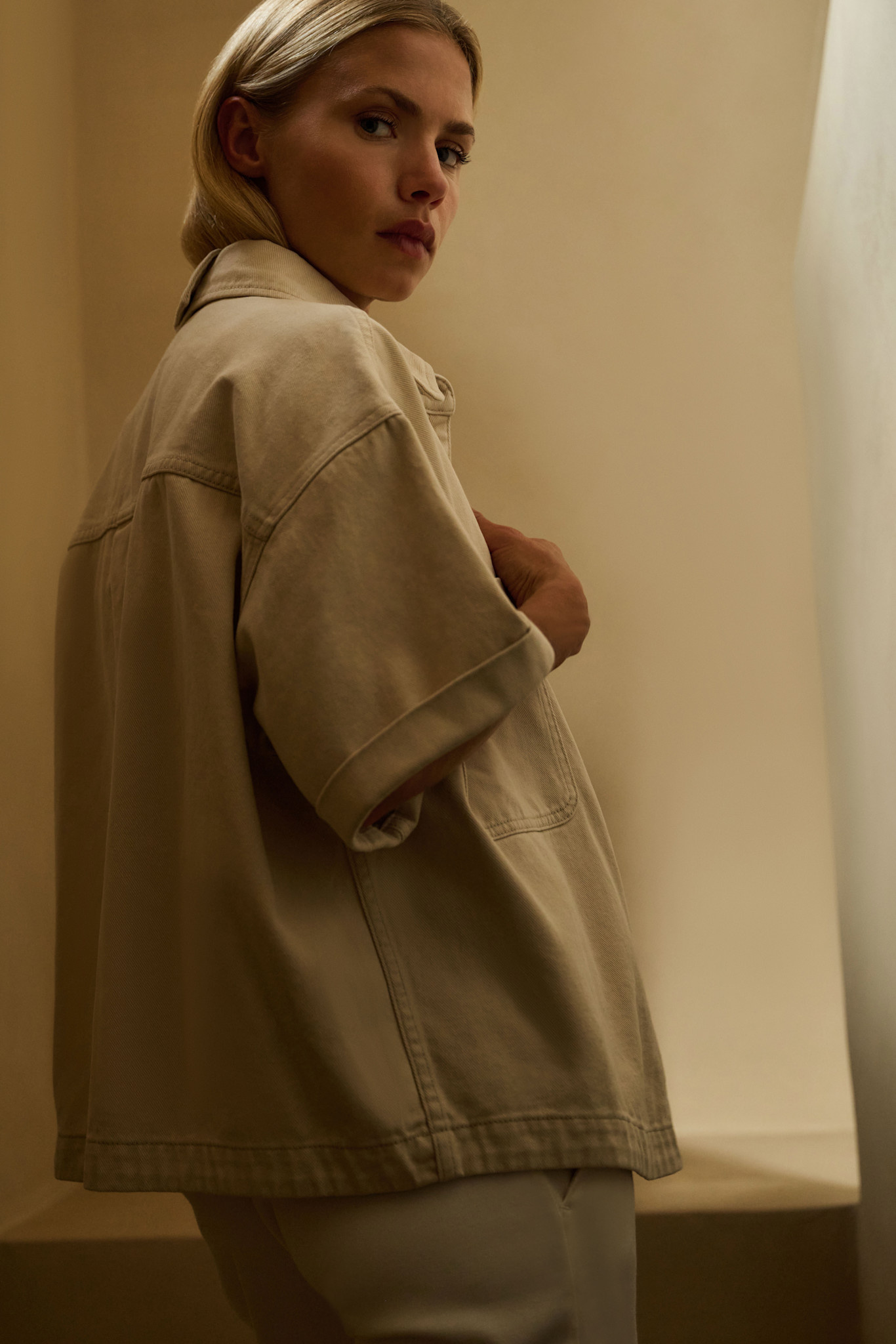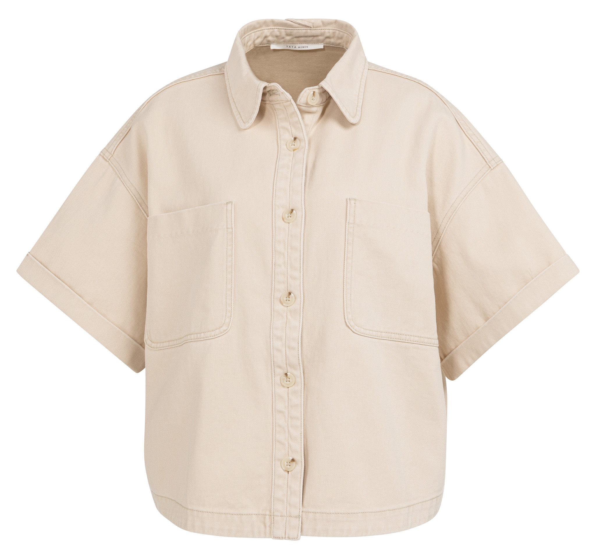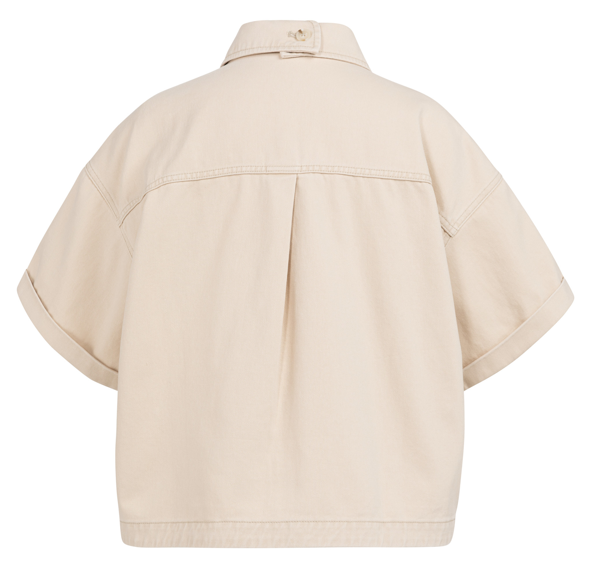 Description du produitCaractéristiques:Coupe ample droiteCol classiqueFermeture boutonnée avec boutons ton sur tonÉpaules tombantesPoches plaquéesLongueur courteComposition:100% CotonRéférence de l'article:Style: 01511050-603-99056