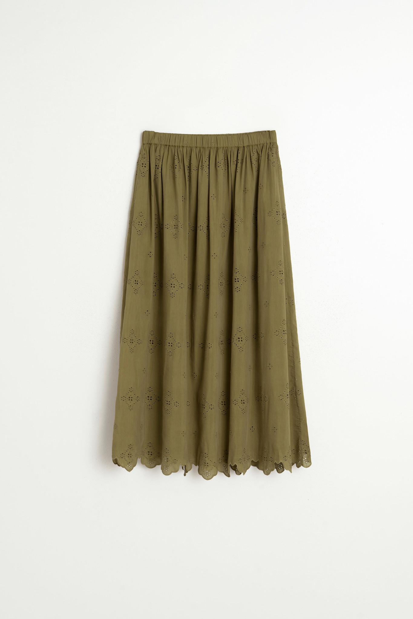 Jupe longue Indi & Cold en broderies anglaises vert khaki