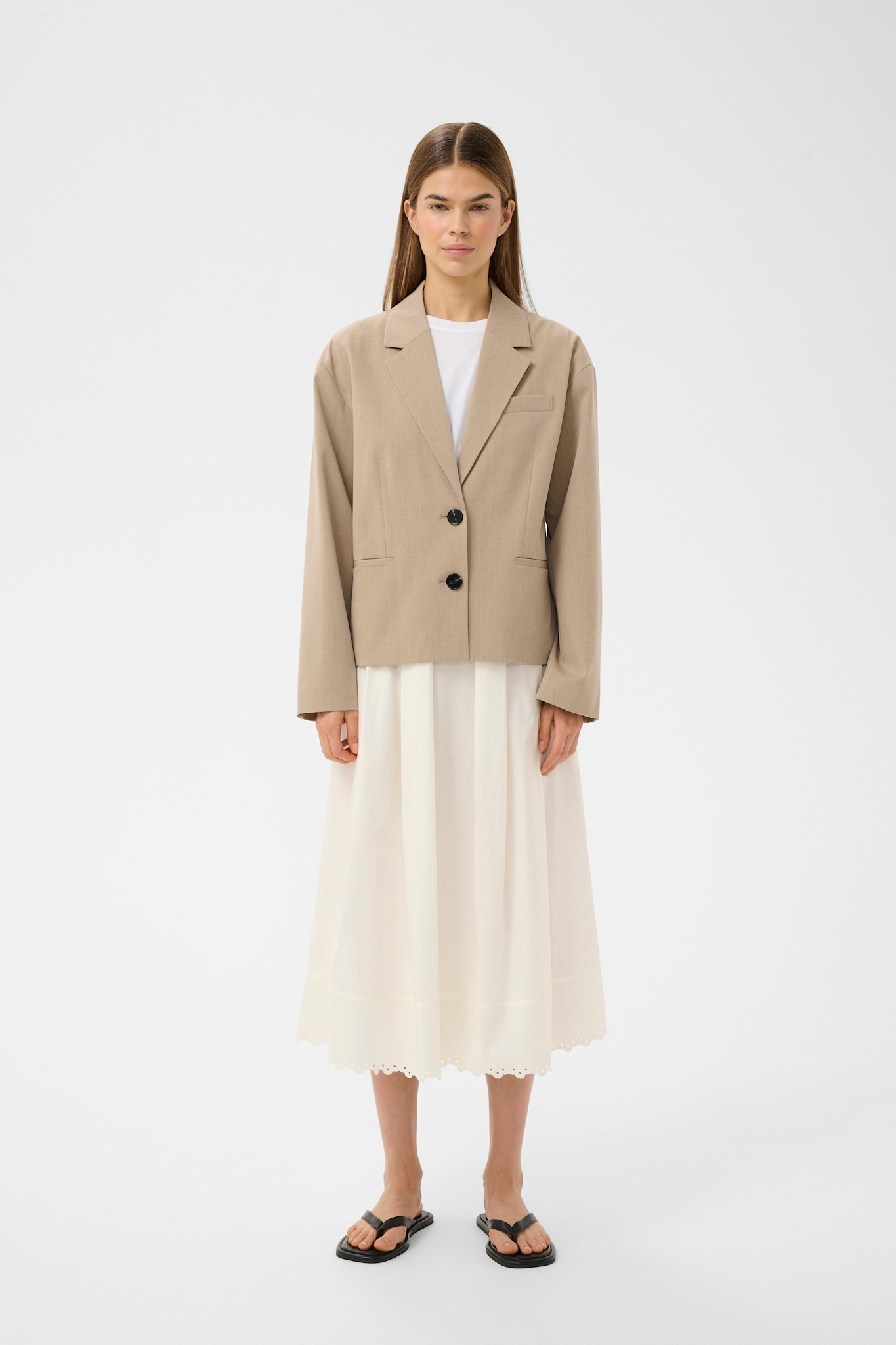 Jupe midi InWear Lia à plis & broderies au bas écrue