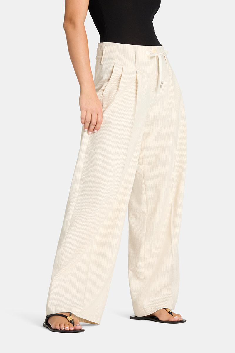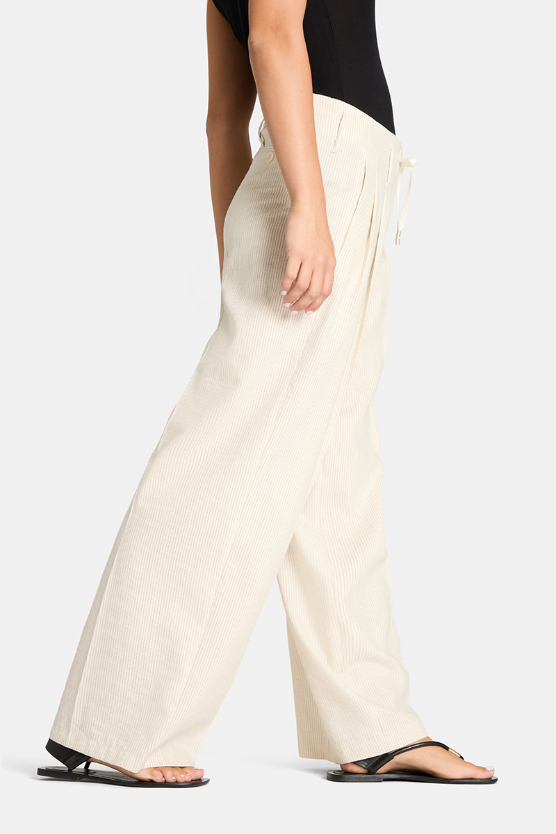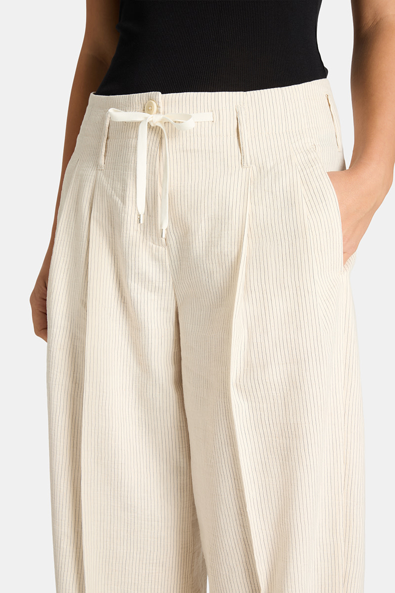 Pantalon Cambio Addison à taille ajustable avec cordon & jambes larges écru rayé noir