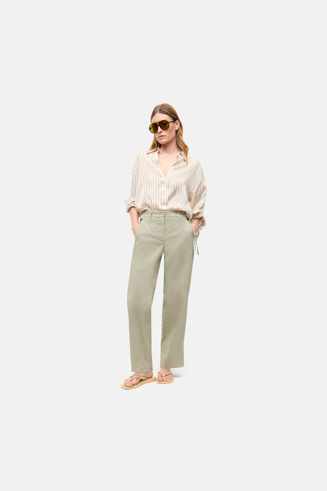 Pantalon Indi & Cold en lin vert khaki