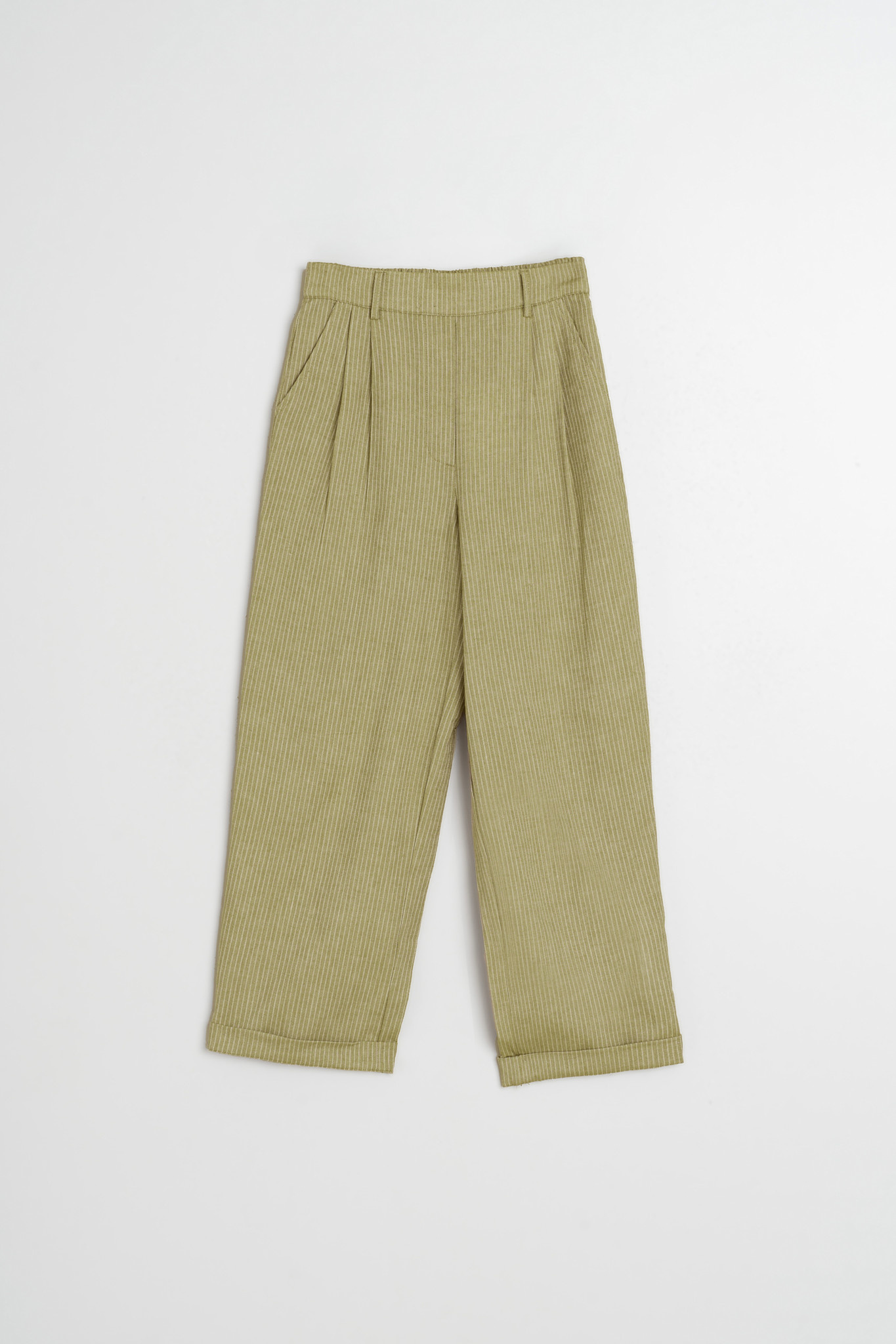 Pantalon Indi & Cold à plis vert khaki rayé
