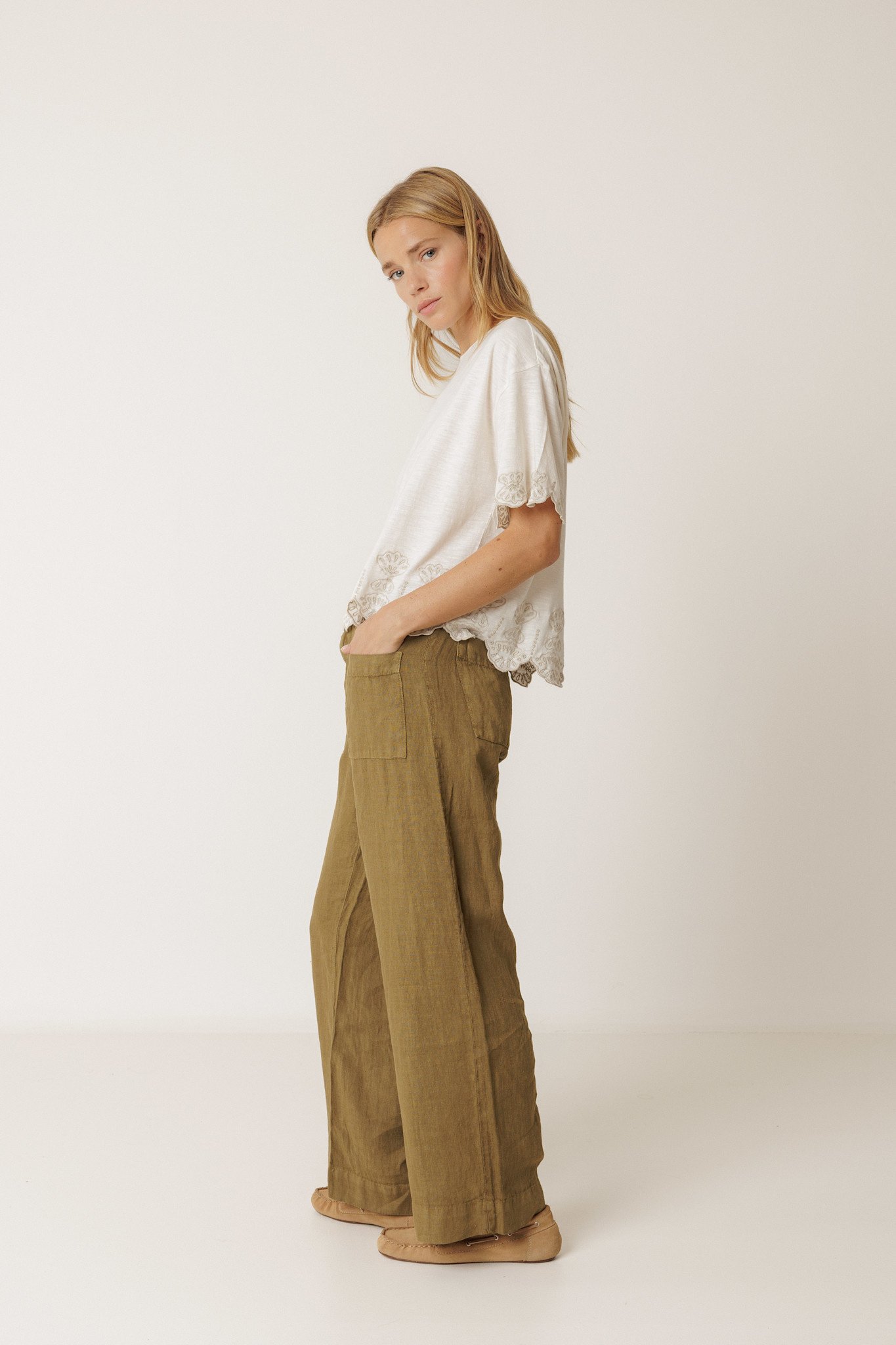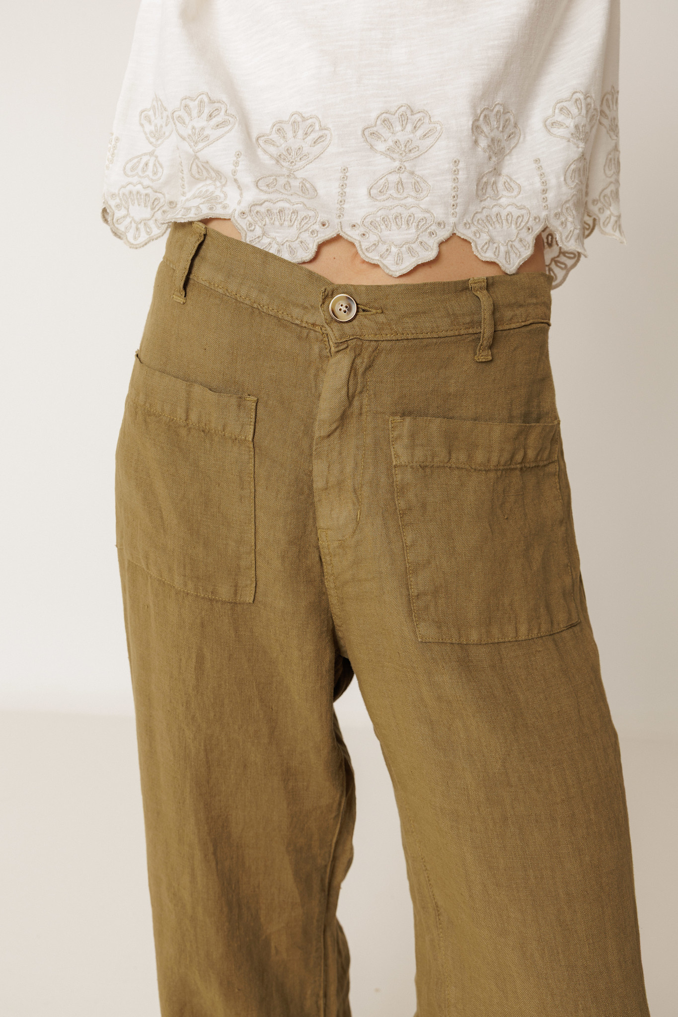Pantalon Indi & Cold en lin vert khaki
