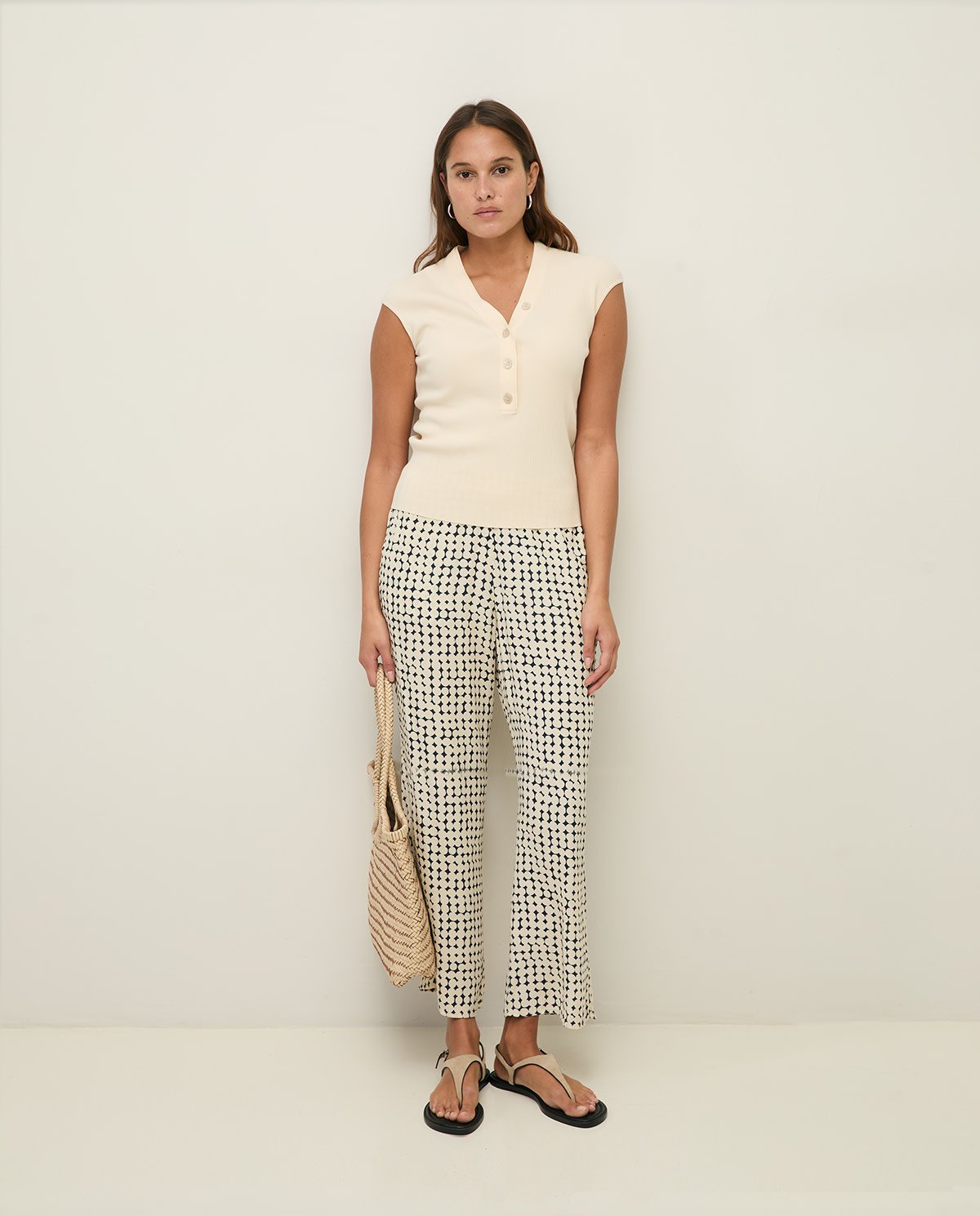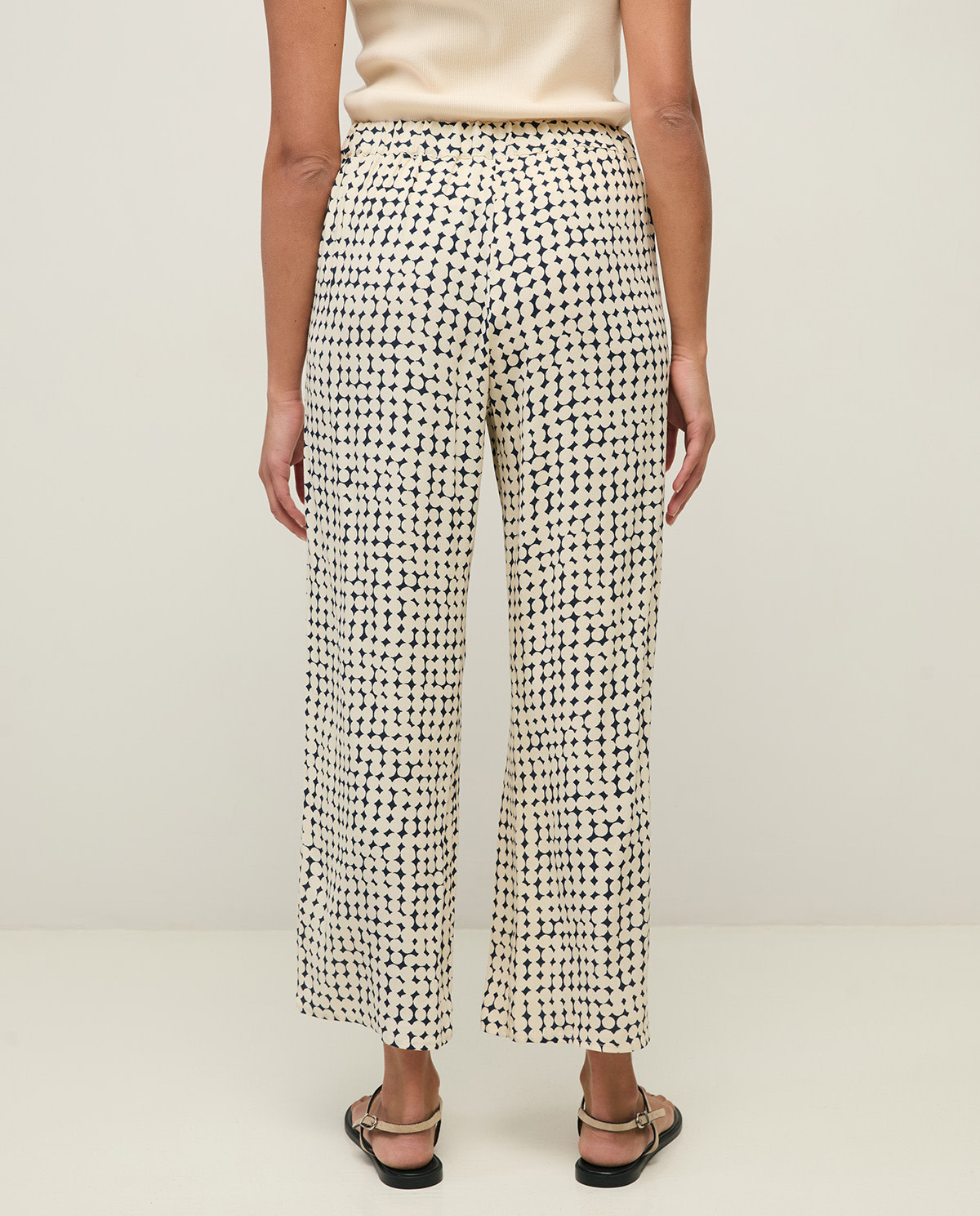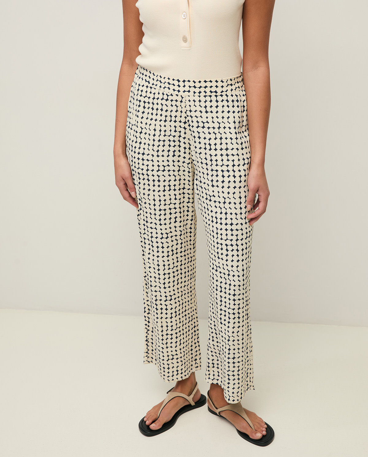 Pantalon Yerse Ipanema bleu marine à ronds abstraits écrus