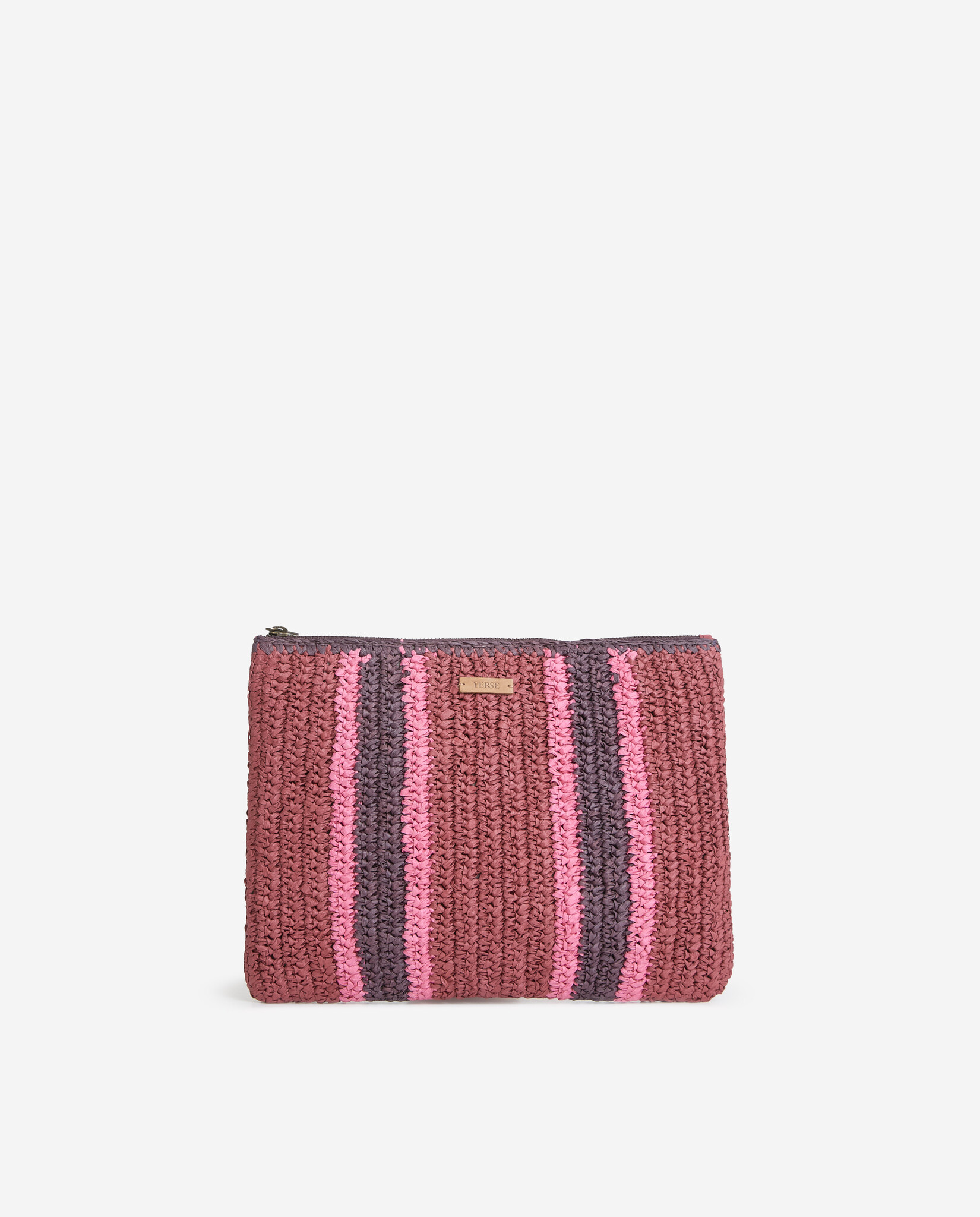 Pochette Yerse Paros en paille rouge framboise rayée prune & fuchsia