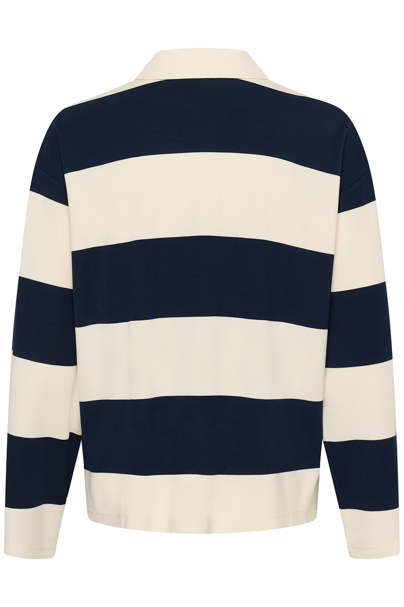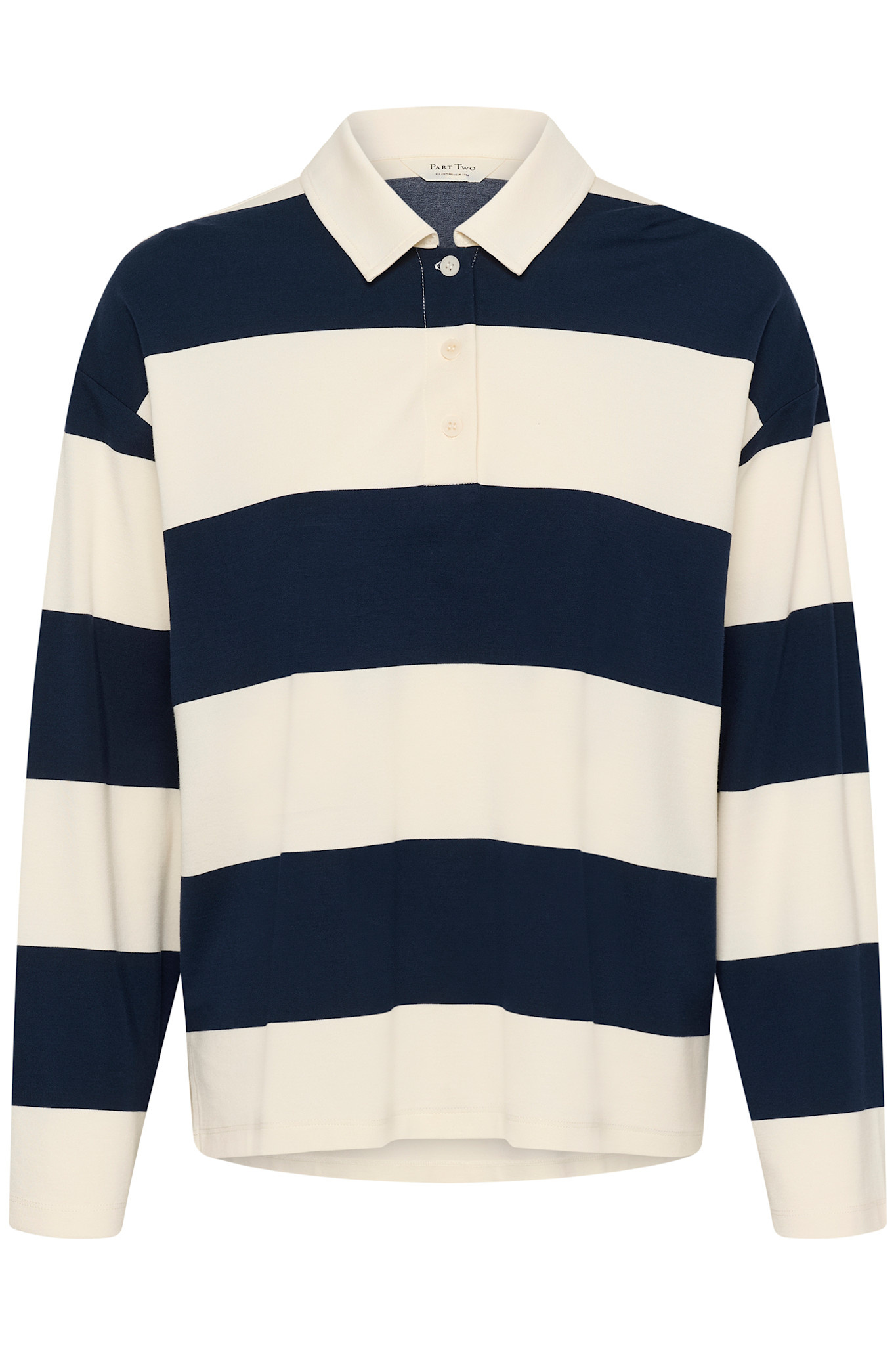 Polo Part Two Amari à manches longues rayé bleu marine & écru