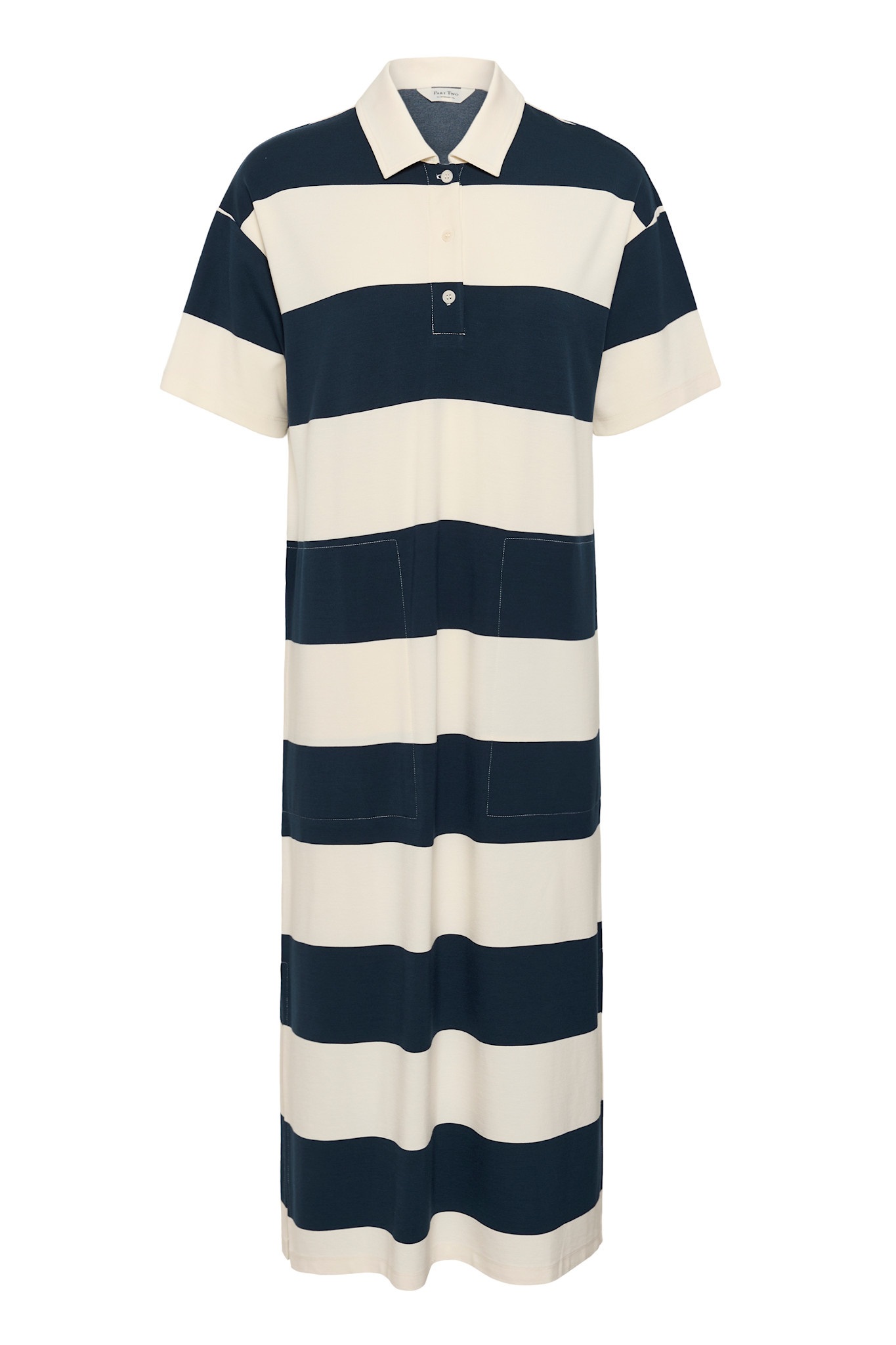 Robe longue Part Two Alise à col polo rayée bleu marine & écrue