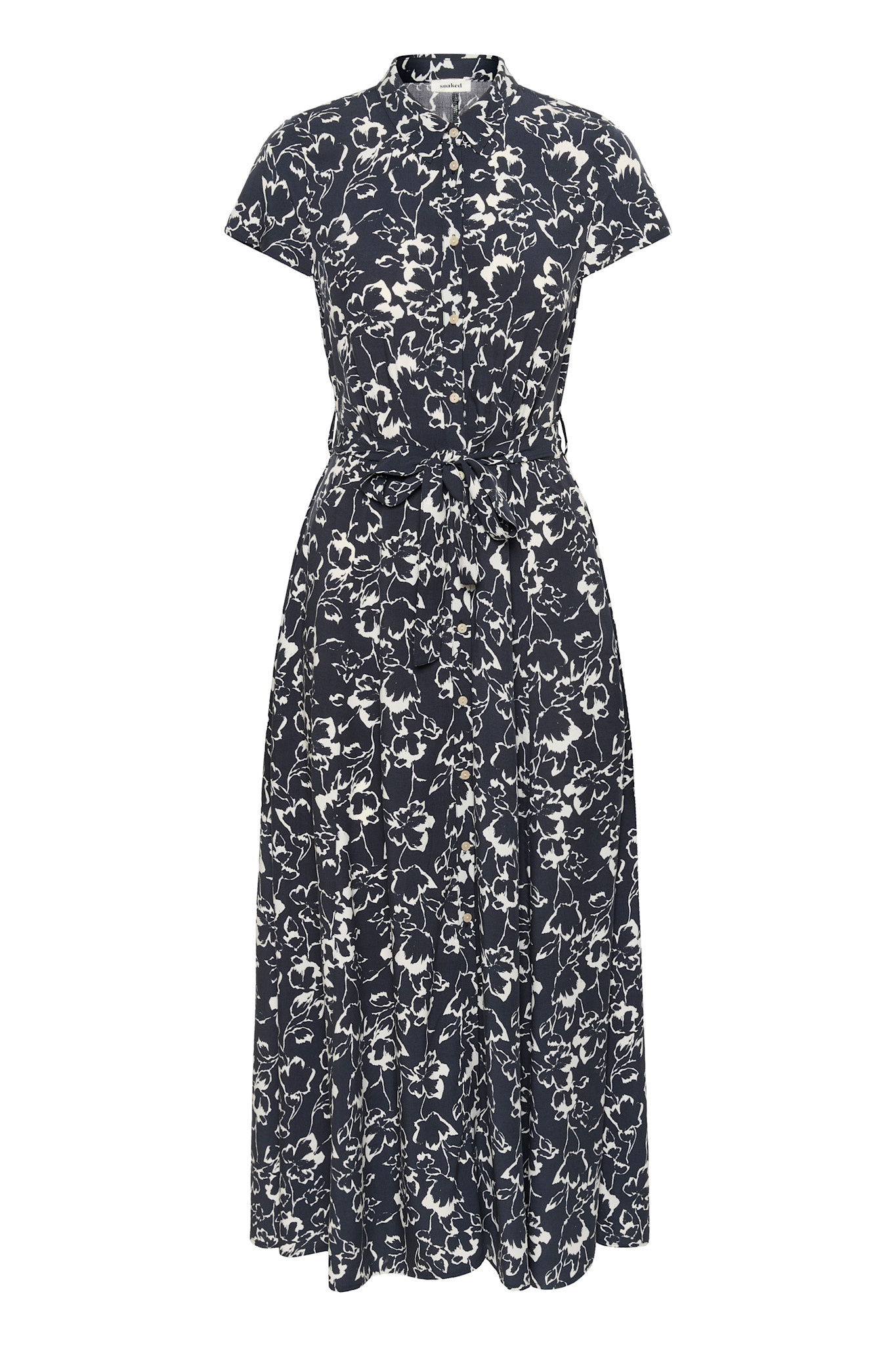Robe longue Soaked Arjuna Maxi bleu marine fleurie blanche