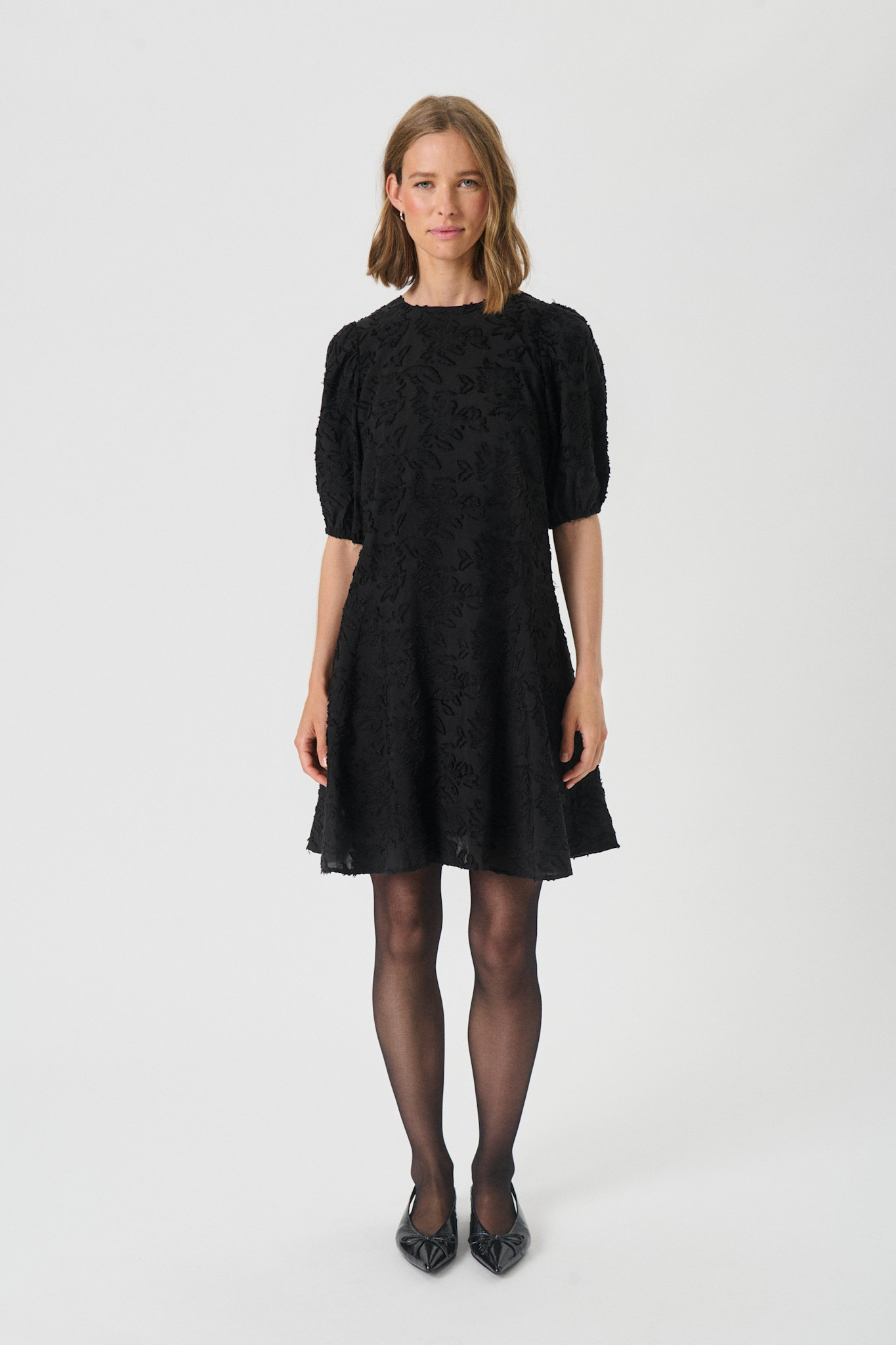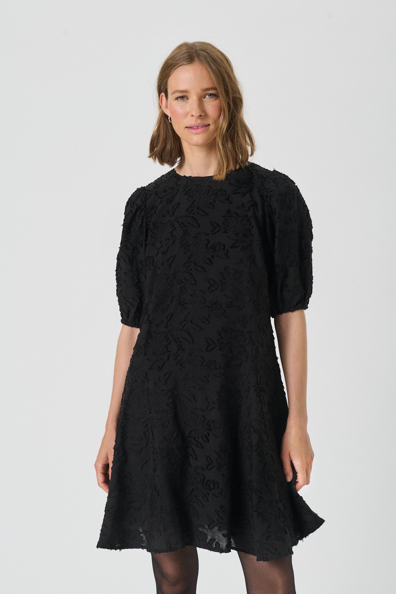 Robe Part Two Vilhelmina à feuilles texturées noire