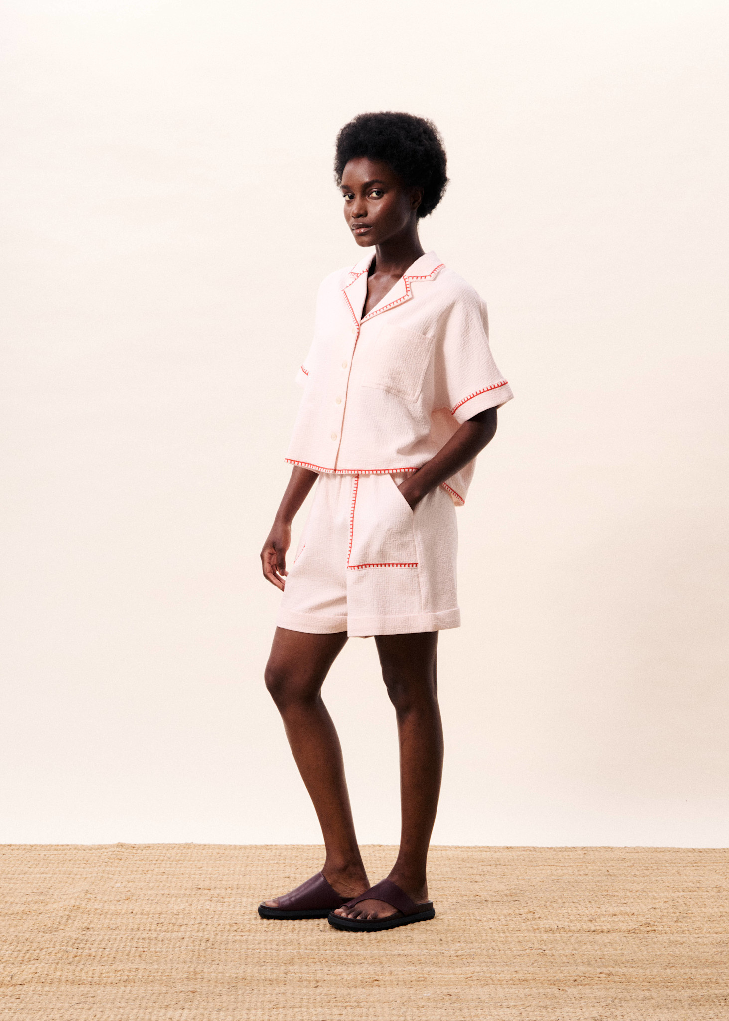 Short Frnch Paris Celestea rose gaufré avec bordures rouge chili