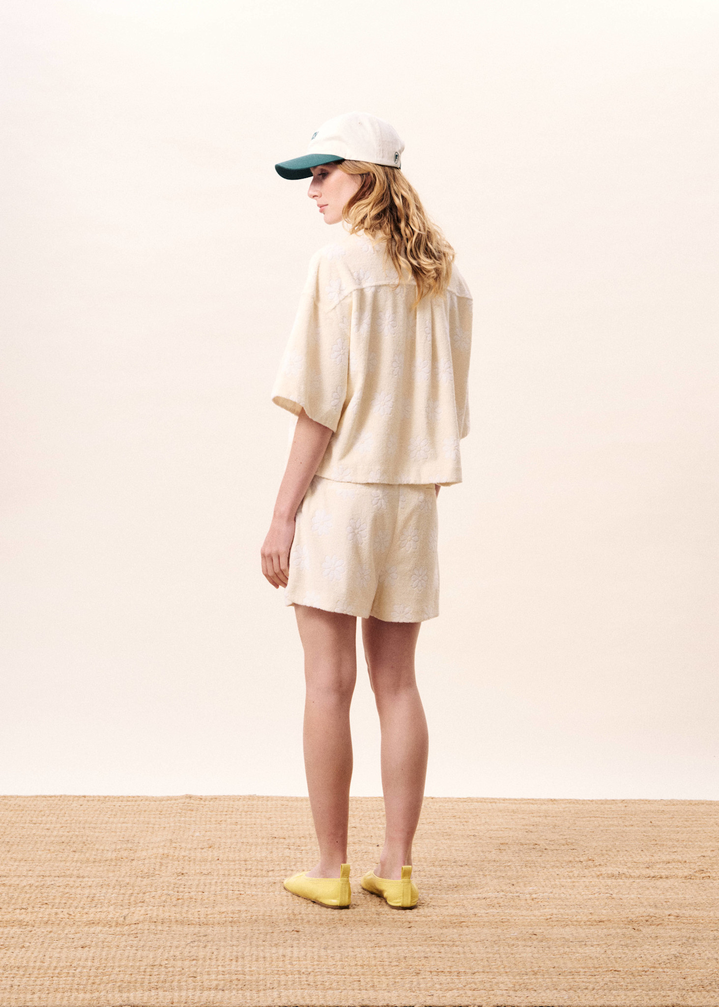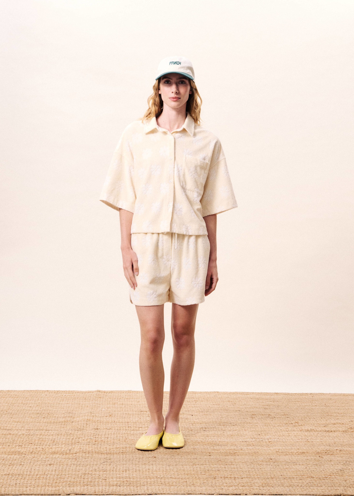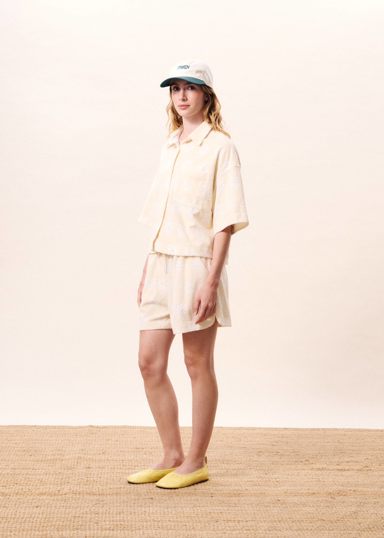 Short Frnch Paris Vaelia en ratine crème fleurie blanc