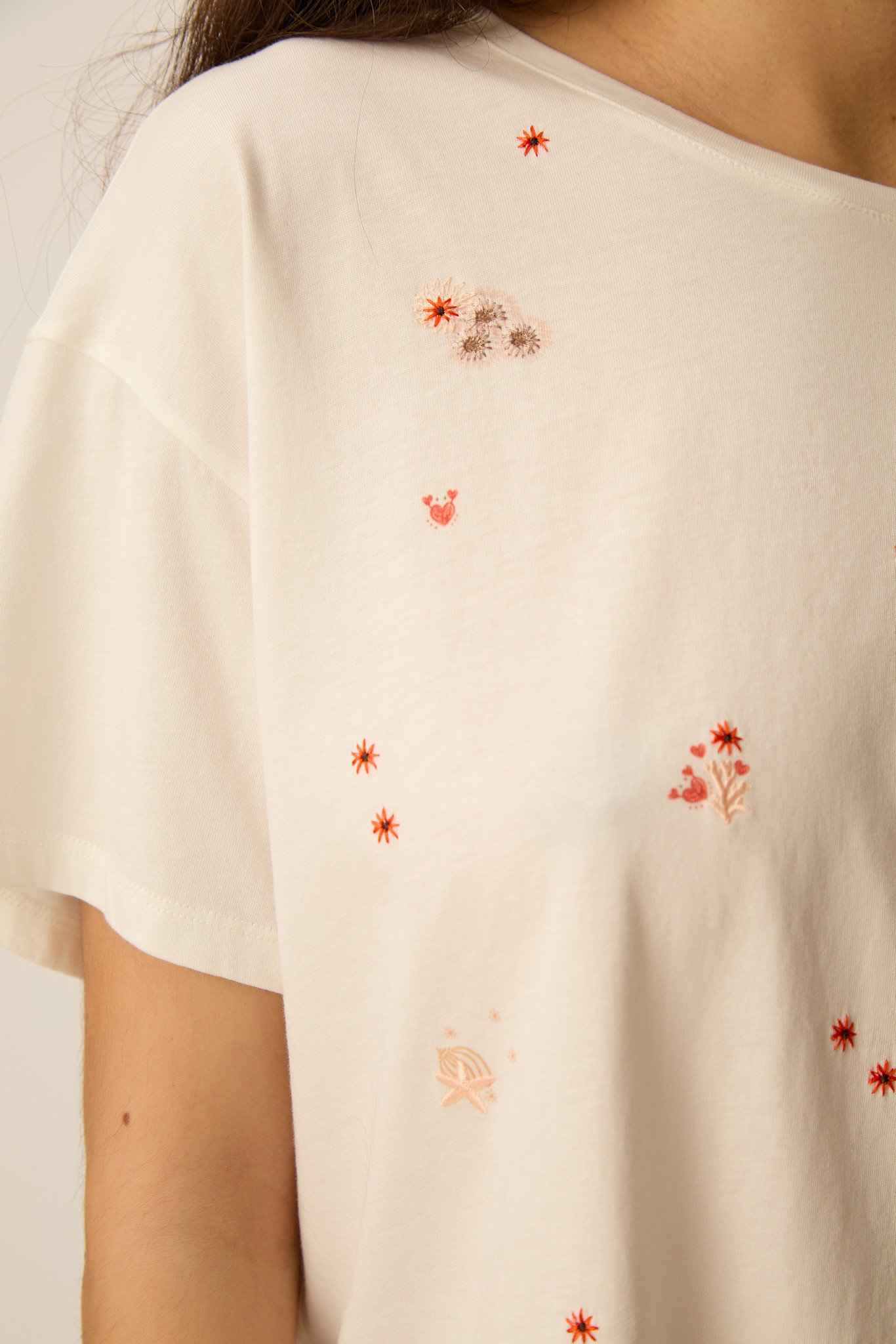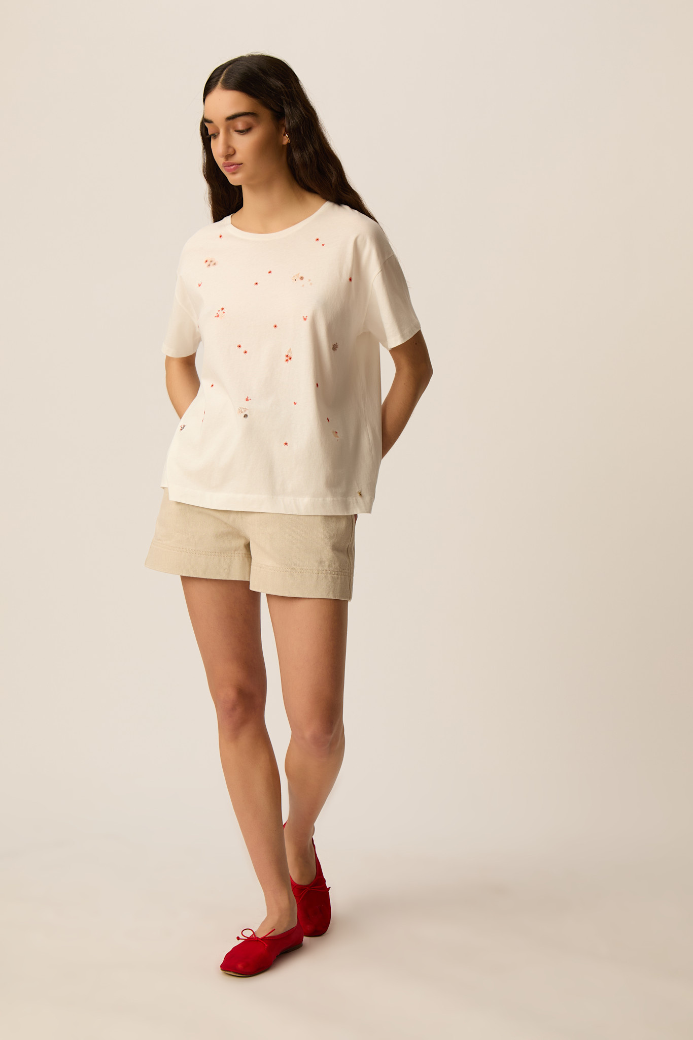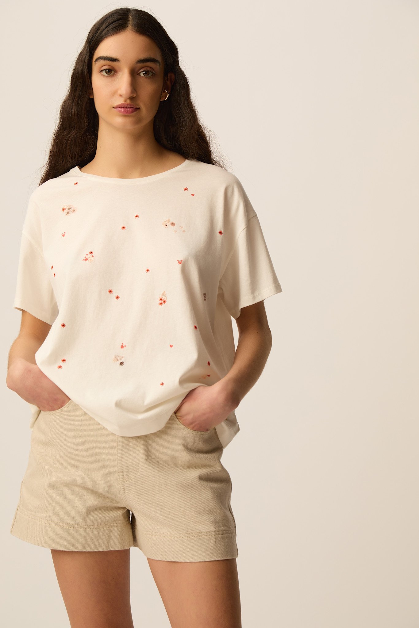 T-shirt Des Petits Hauts Ilia écru à petits imprimés Crabbie