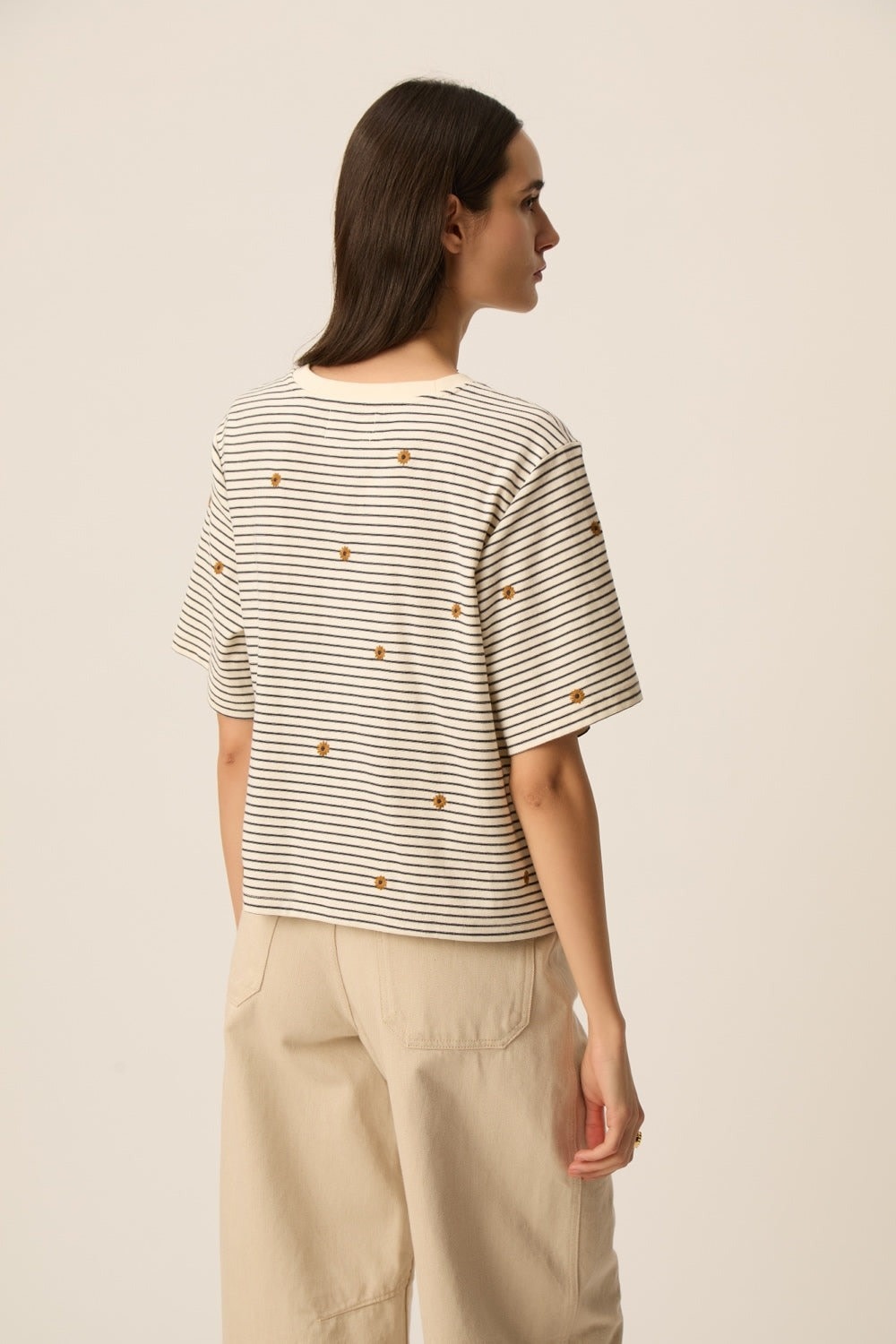 - T-shirt rayé avec broderies de fleurs